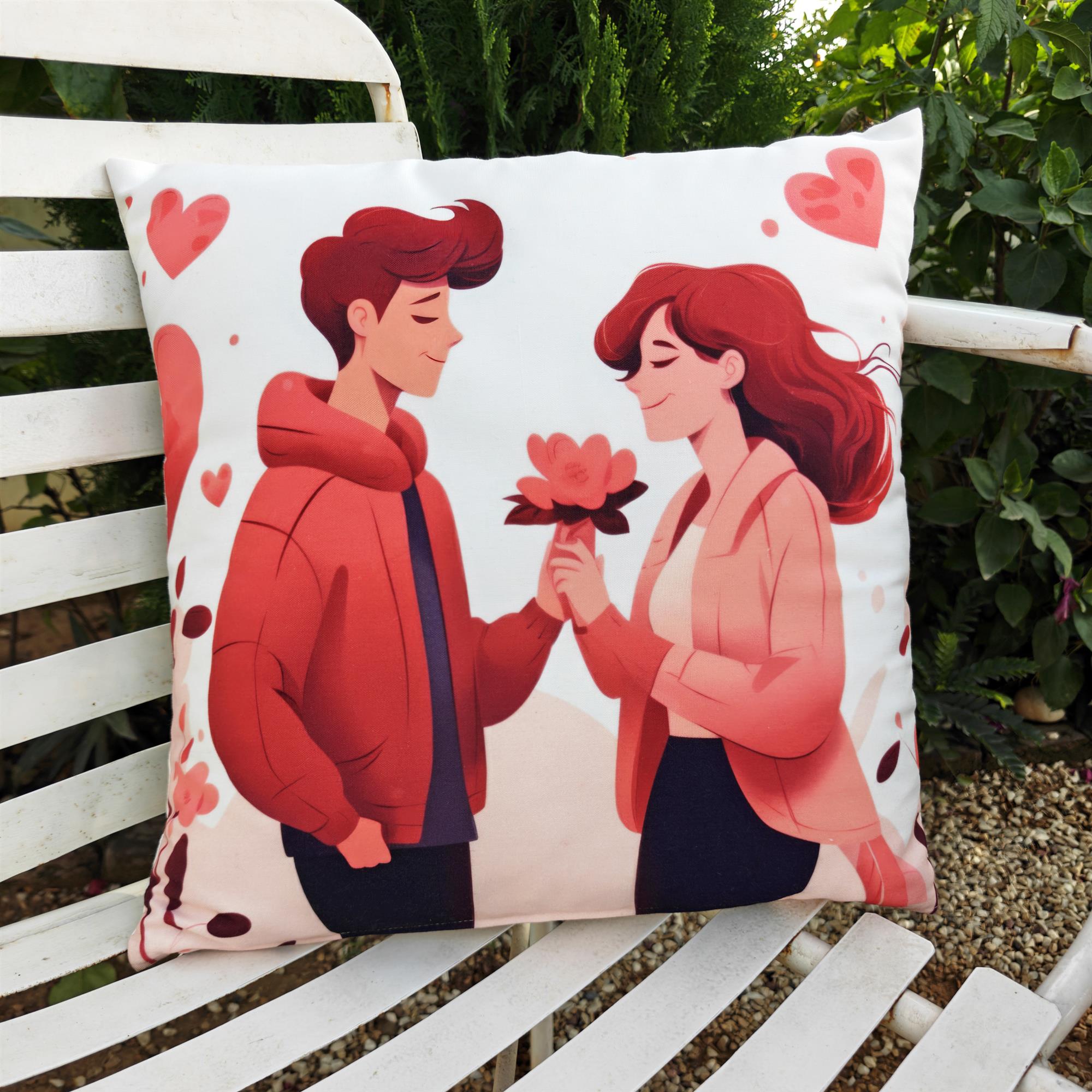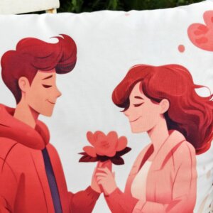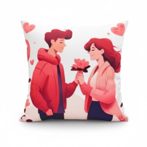 Infuse your home with a touch of sweetness and modern romance with our Charming Couple with Flower Printed Pillowcase. Featuring a delightful, contemporary illustration of a young couple sharing a flower amidst floating hearts, this cushion cover is a charming accent for any living space. It’s an ideal, heartwarming gift for weddings, anniversaries, or Valentine’s Day.