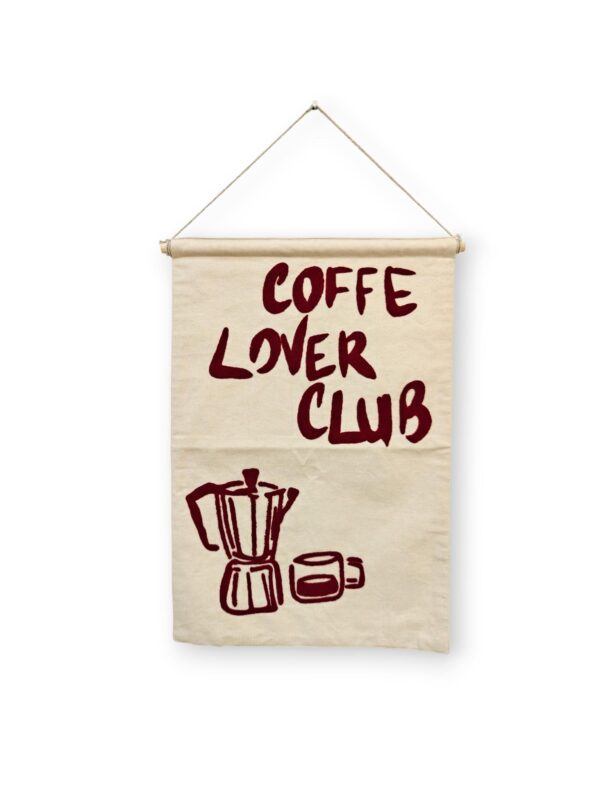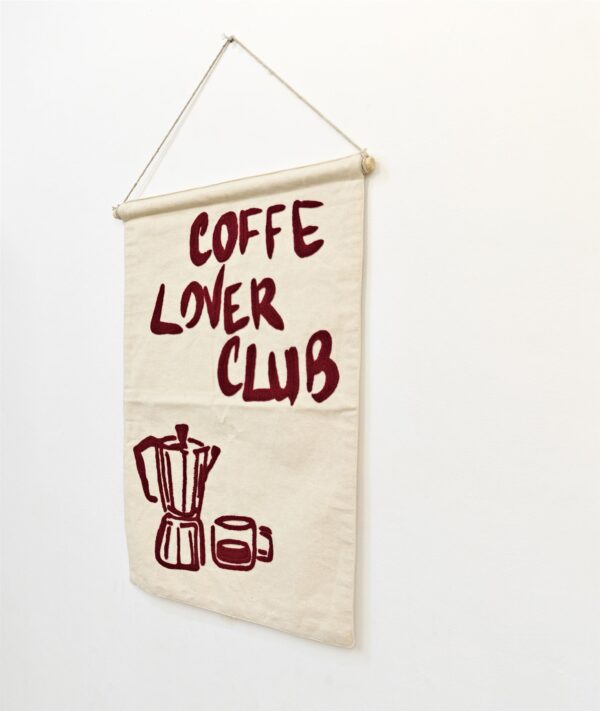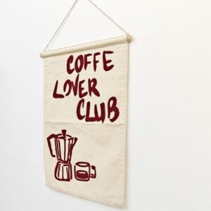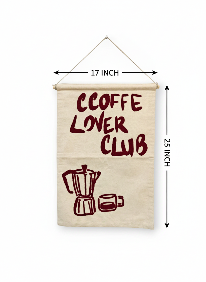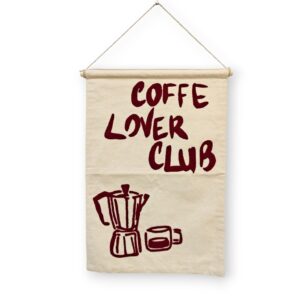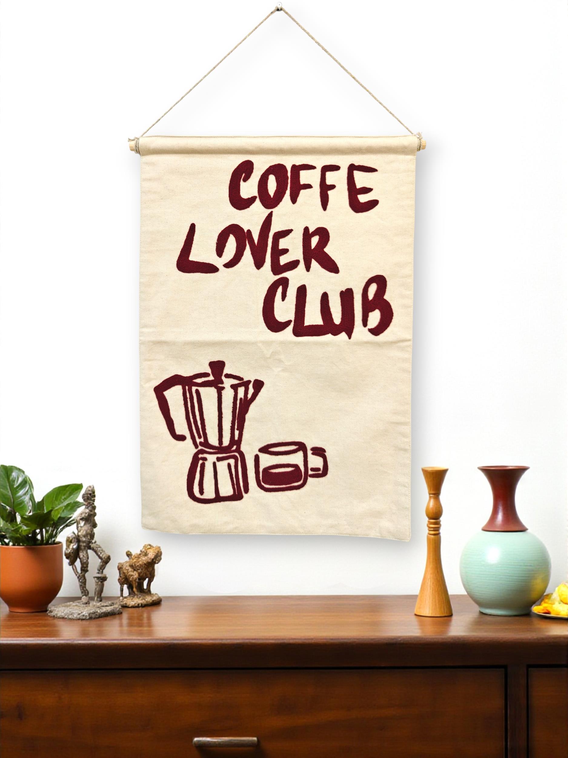 “Coffee Lover Club” Hand-Embroidered Wall Tapestry