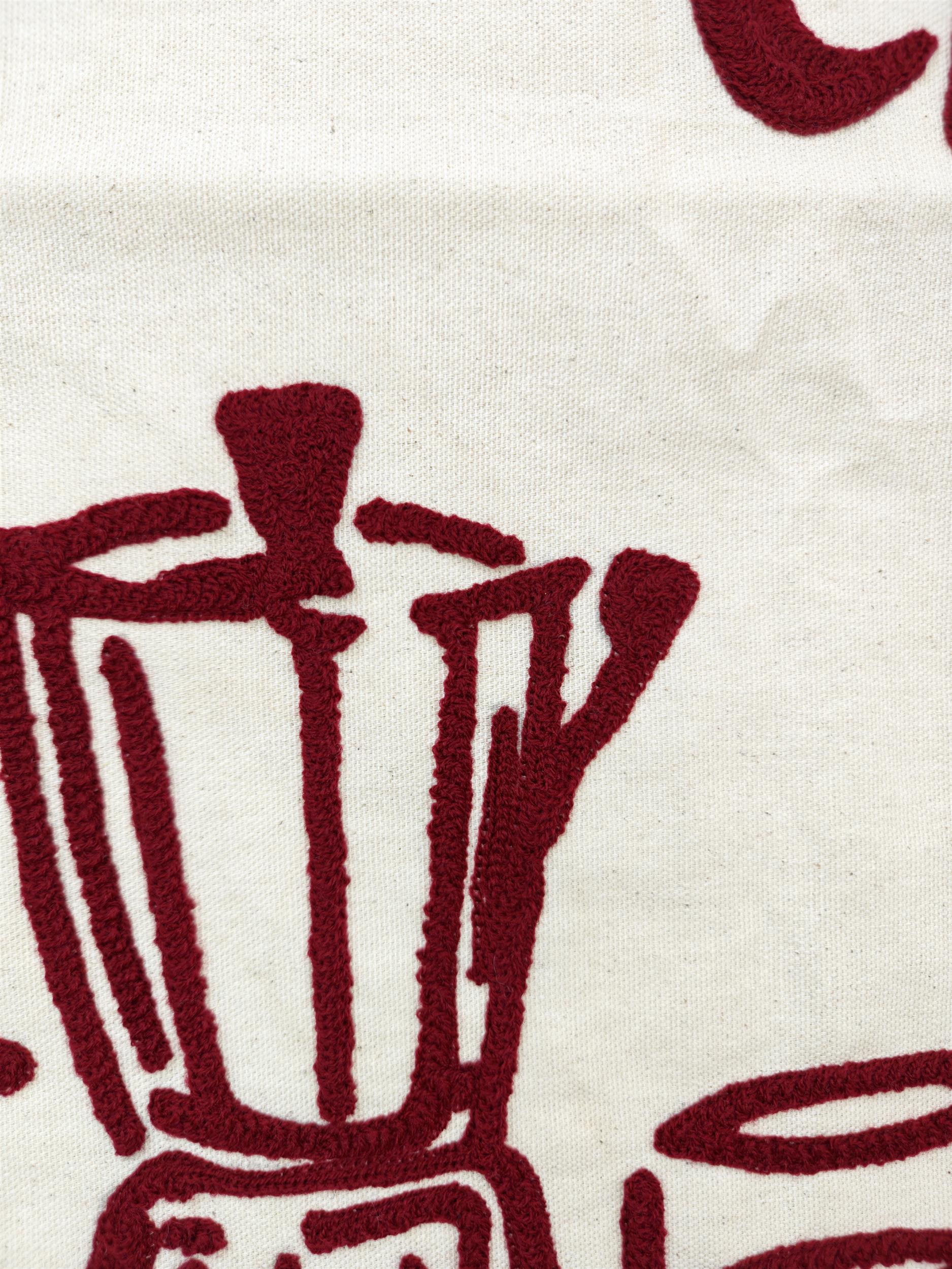 - Warm Color Palette: The neutral fabric and rich, dark red embroidery create a warm, inviting aesthetic that complements both modern and traditional décor.