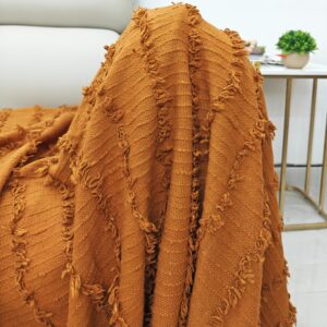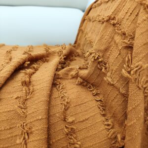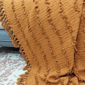 This gorgeous hue is reminiscent of autumn leaves and sun-baked earth, adding a sophisticated, grounded pop of color to any room. The throw features our signature soft, three-dimensional texture and playful fringed edges, making it an incredibly inviting and stylish layer for your sofa, armchair, or bed. Perfect for creating a cozy, global-inspired or farmhouse aesthetic.