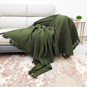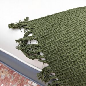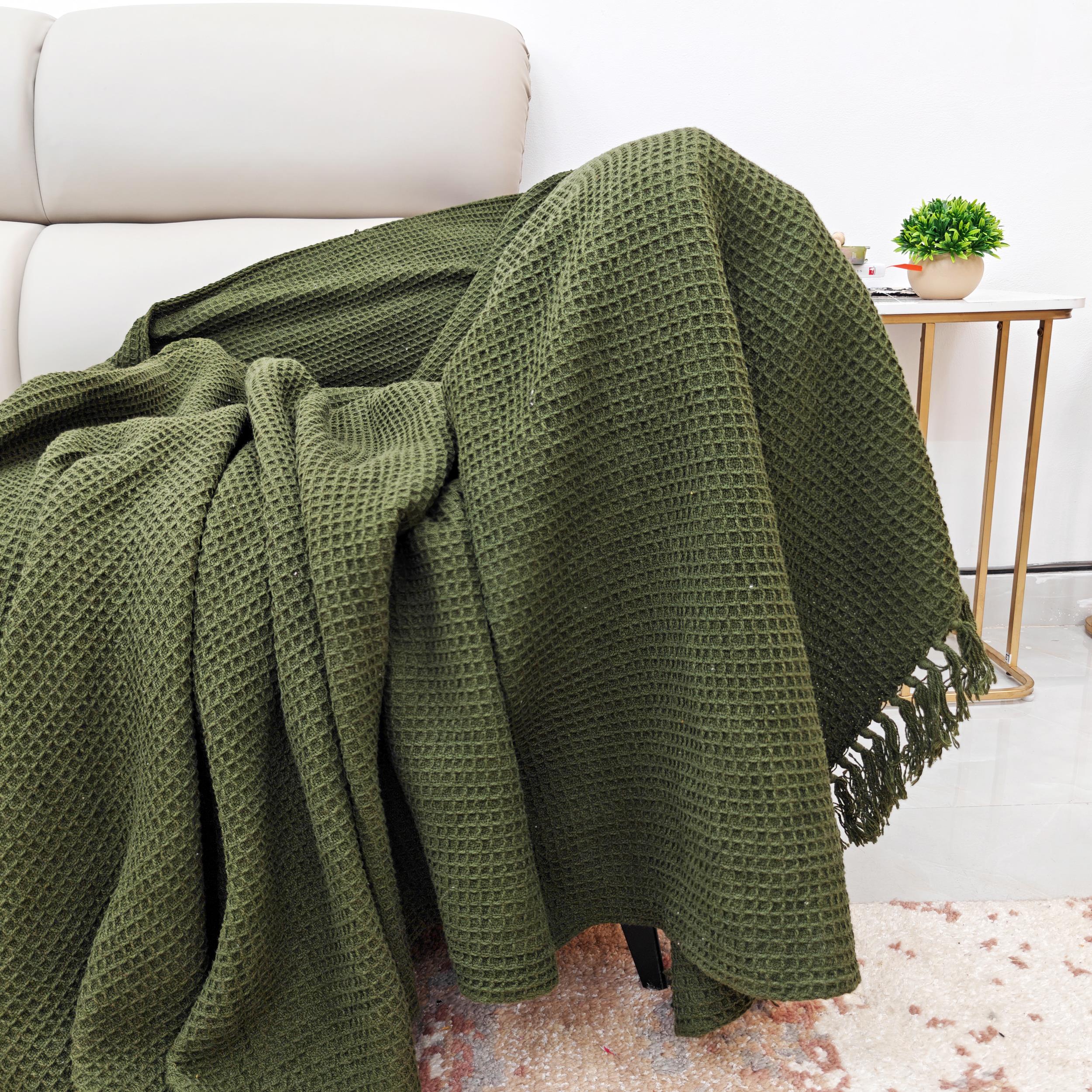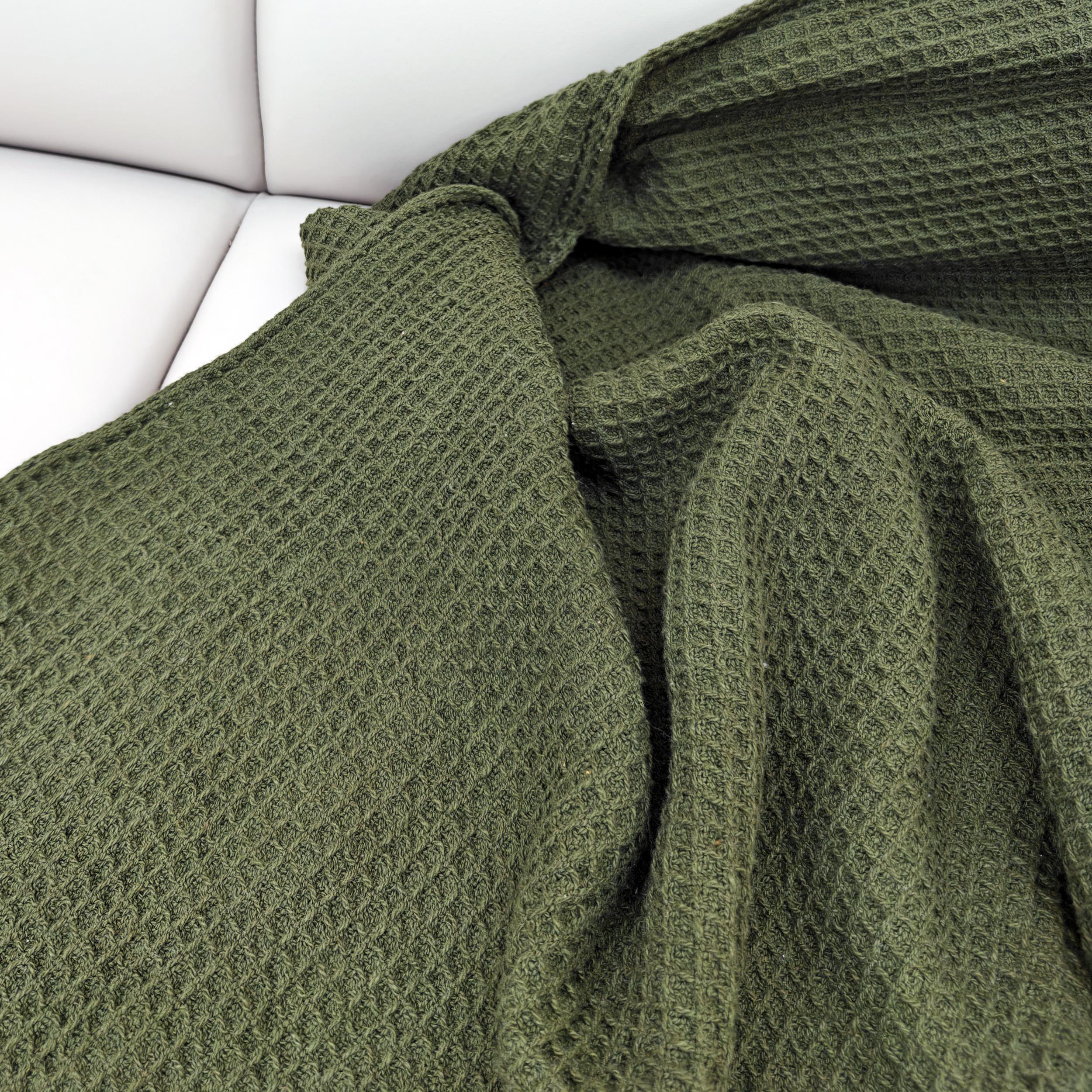 Earthy Elegance: Olive Green Textured Cotton Throw