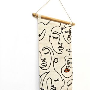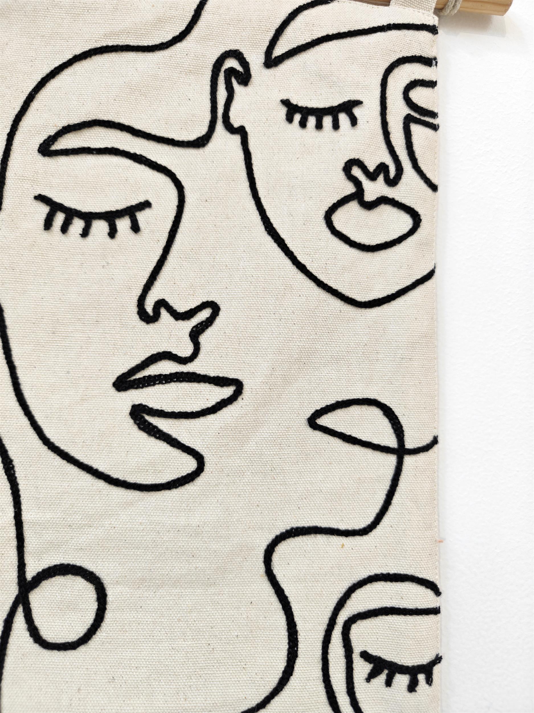 “Faces in Motion” Hand-Embroidered Line Art Wall Tapestry