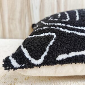 Discover the perfect blend of high-end design and cozy texture with the ‘Monochrome Maze’ Cushion Cover. This striking piece features a captivating black and white graphic pattern that is both modern and timeless.