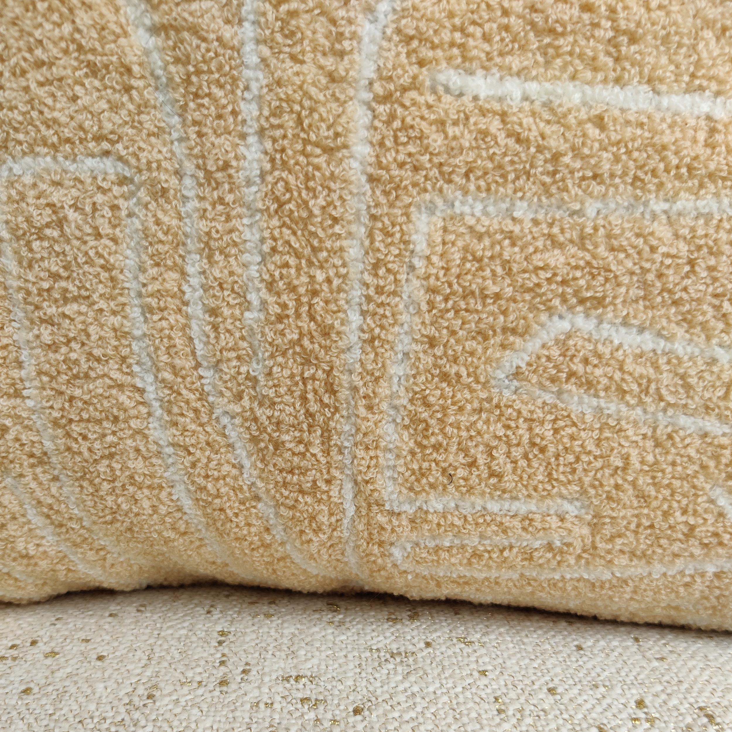 • Artisanal Texture: The Hand-Embroidered acrylic wool creates a three-dimensional effect, transforming the graphic lines into a plush, tactile experience.