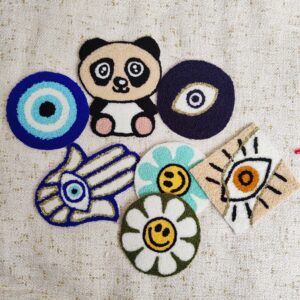 This isn’t just a coaster; it’s a piece of textile art. Crafted using the unique punch needle technique, the design features the powerful Hamsa Hand silhouette enclosing the watchful Evil Eye (Nazar).