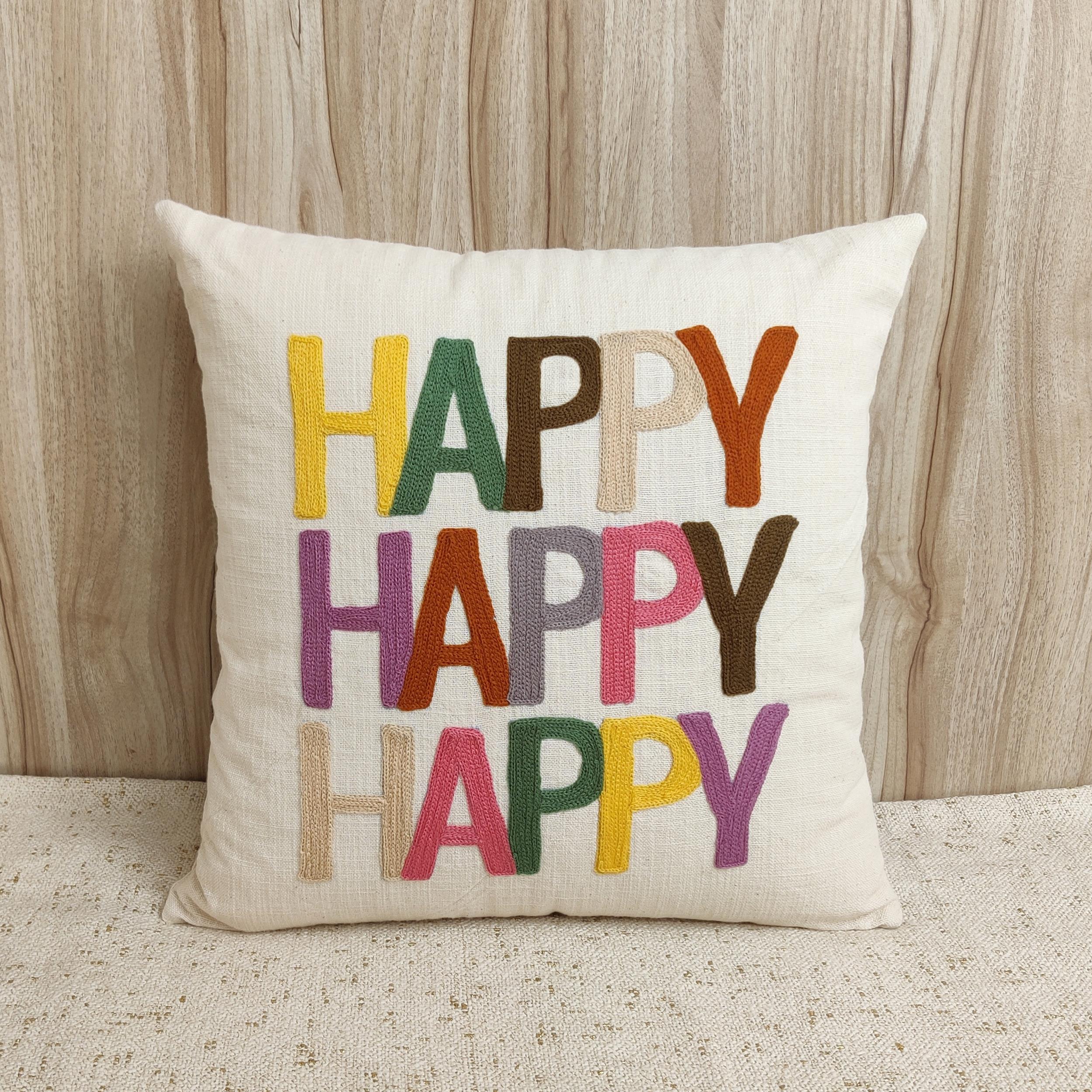 The ‘Triple Happy’ Hand-Embroidered Pillow Cover