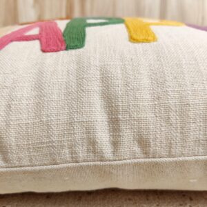 - Hand-Embroidered Texture: The acrylic wool embroidery is densely stitched, giving the letters a wonderful raised, tactile texture that stands out from the fabric surface.