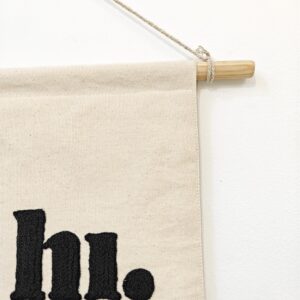 - Handmade Texture: Crafted on natural, unbleached cotton canvas using hand embroidery technique. The chunky black text has a gorgeous raised, soft texture that is unique to handcrafted textile art.