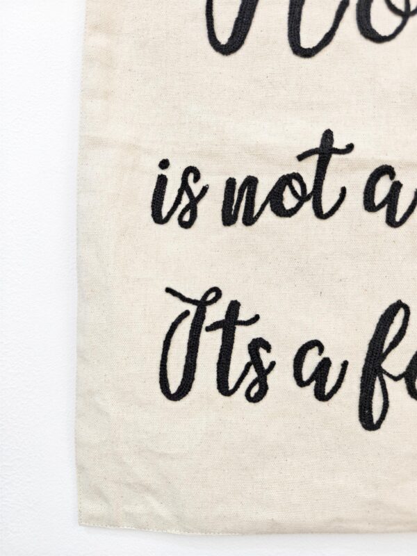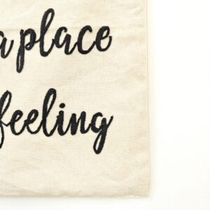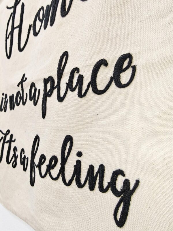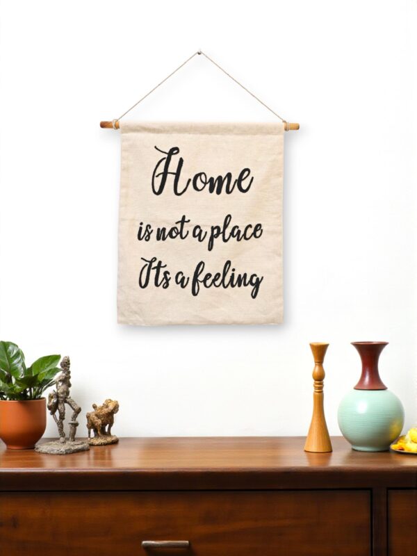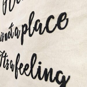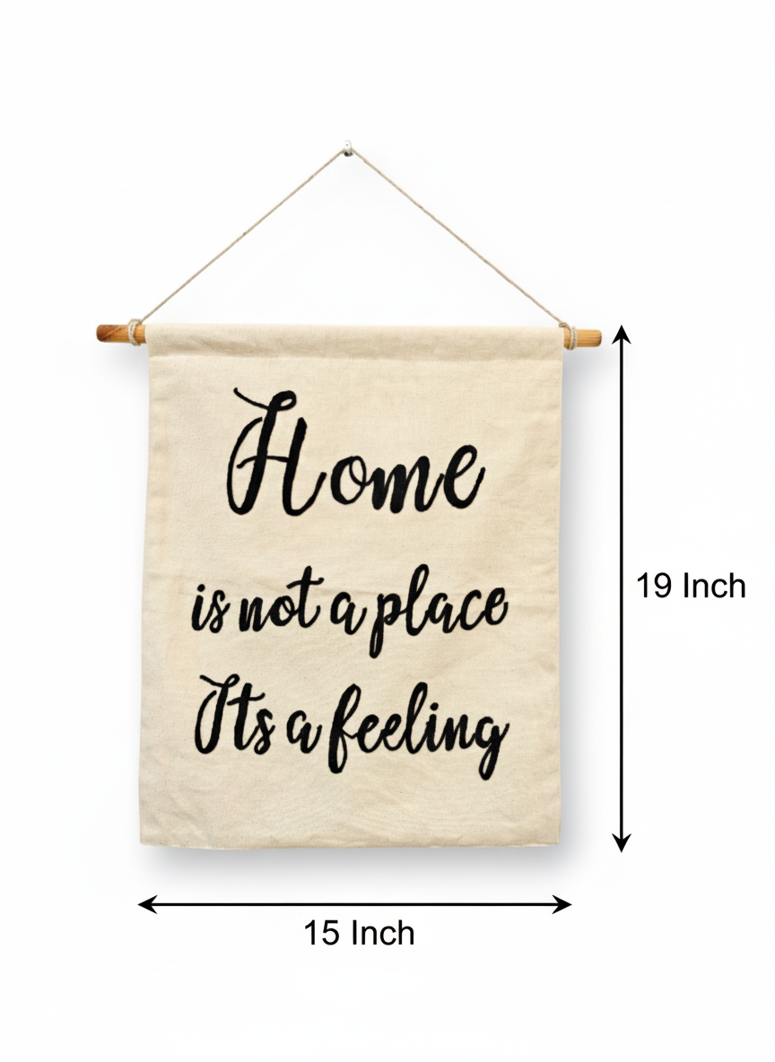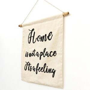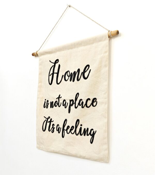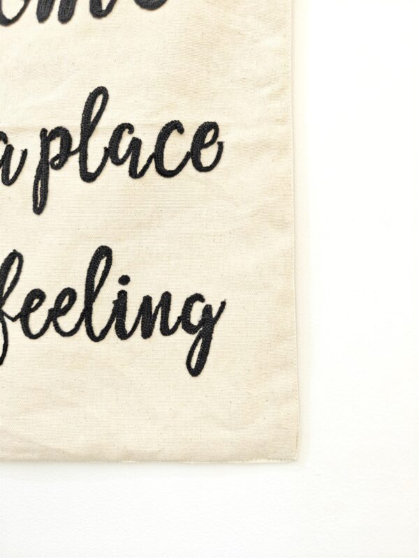 Transform any space into a haven of warmth and comfort with this beautiful hand-embroidered cotton wall tapestry. This thoughtful piece features the heartwarming message: “Home is not a place It’s a feeling” in elegant, flowing black script.