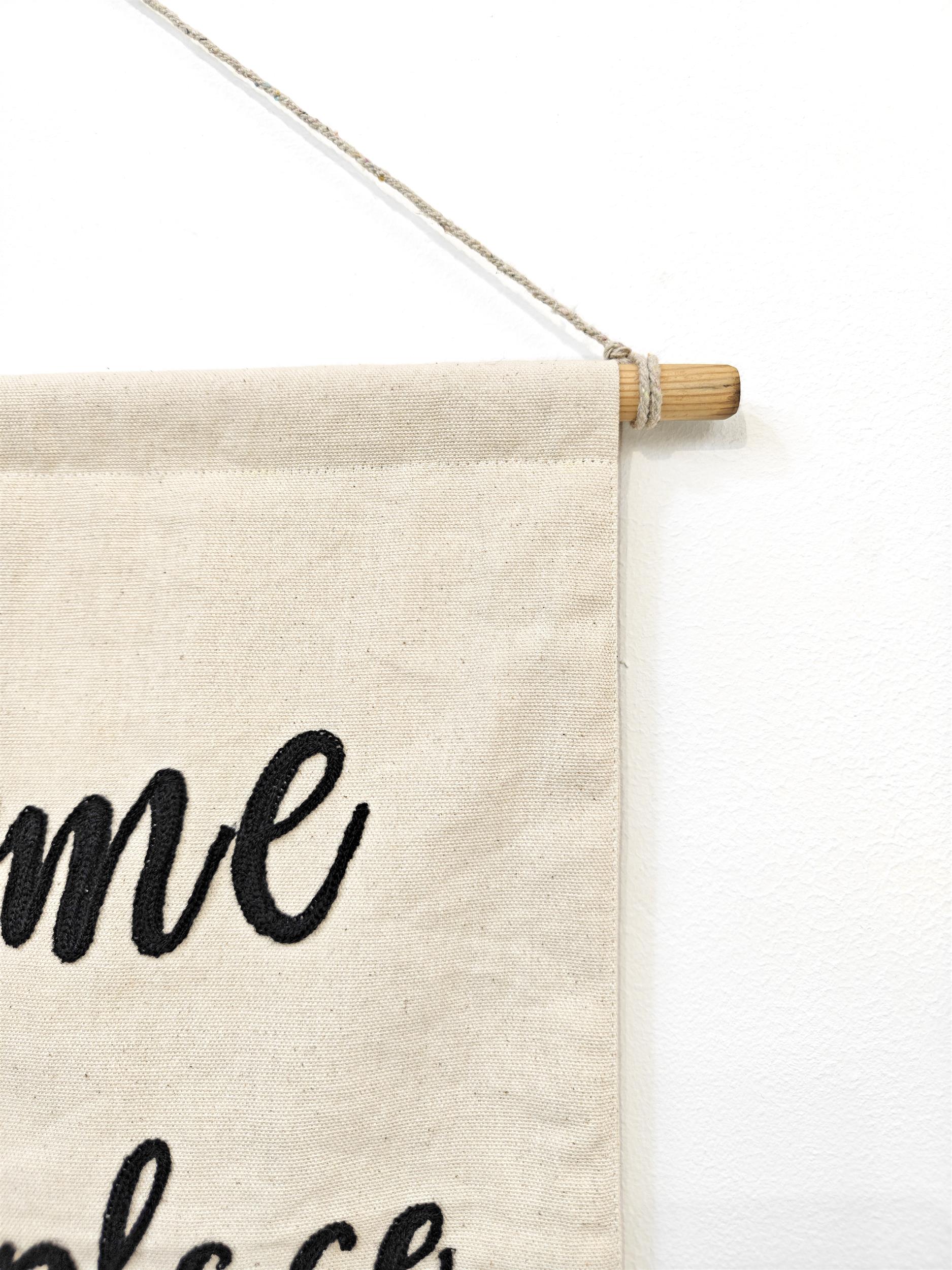 “Home is a Feeling” Hand-Embroidered Inspirational Wall Tapestry