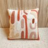 Inject a burst of warm color and artistic texture into your space with this stunning hand-embroidered cotton cushion cover. This piece is a modern statement, featuring bold, flowing, abstract white lines that suggest stylized script or calligraphy on a rich, textured terracotta or burnt orange fabric.