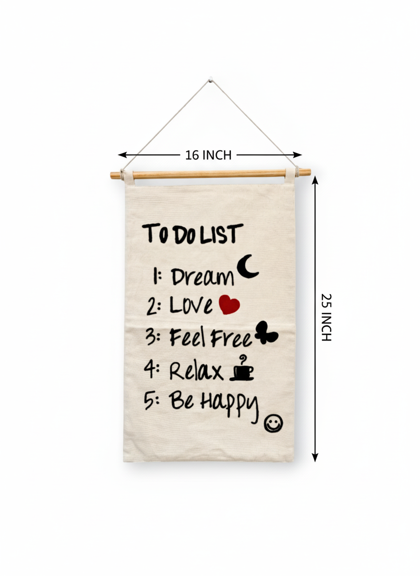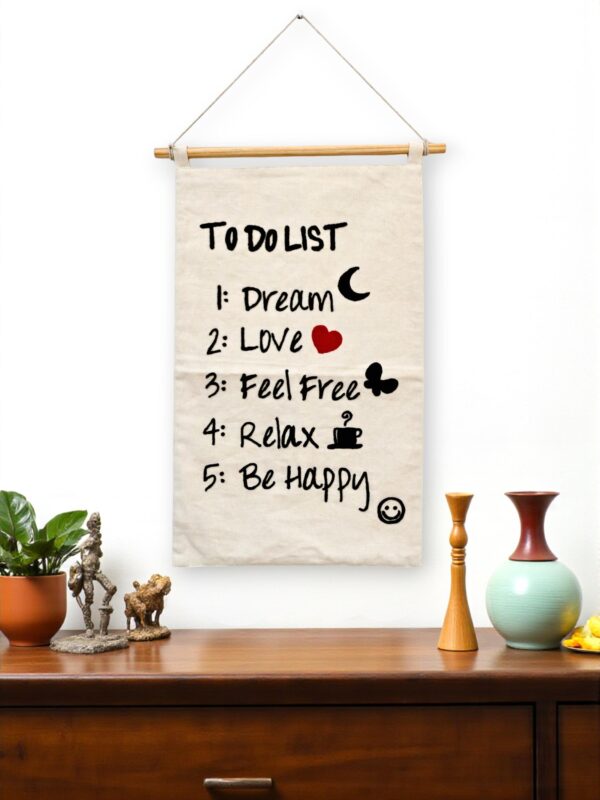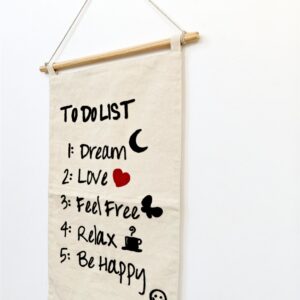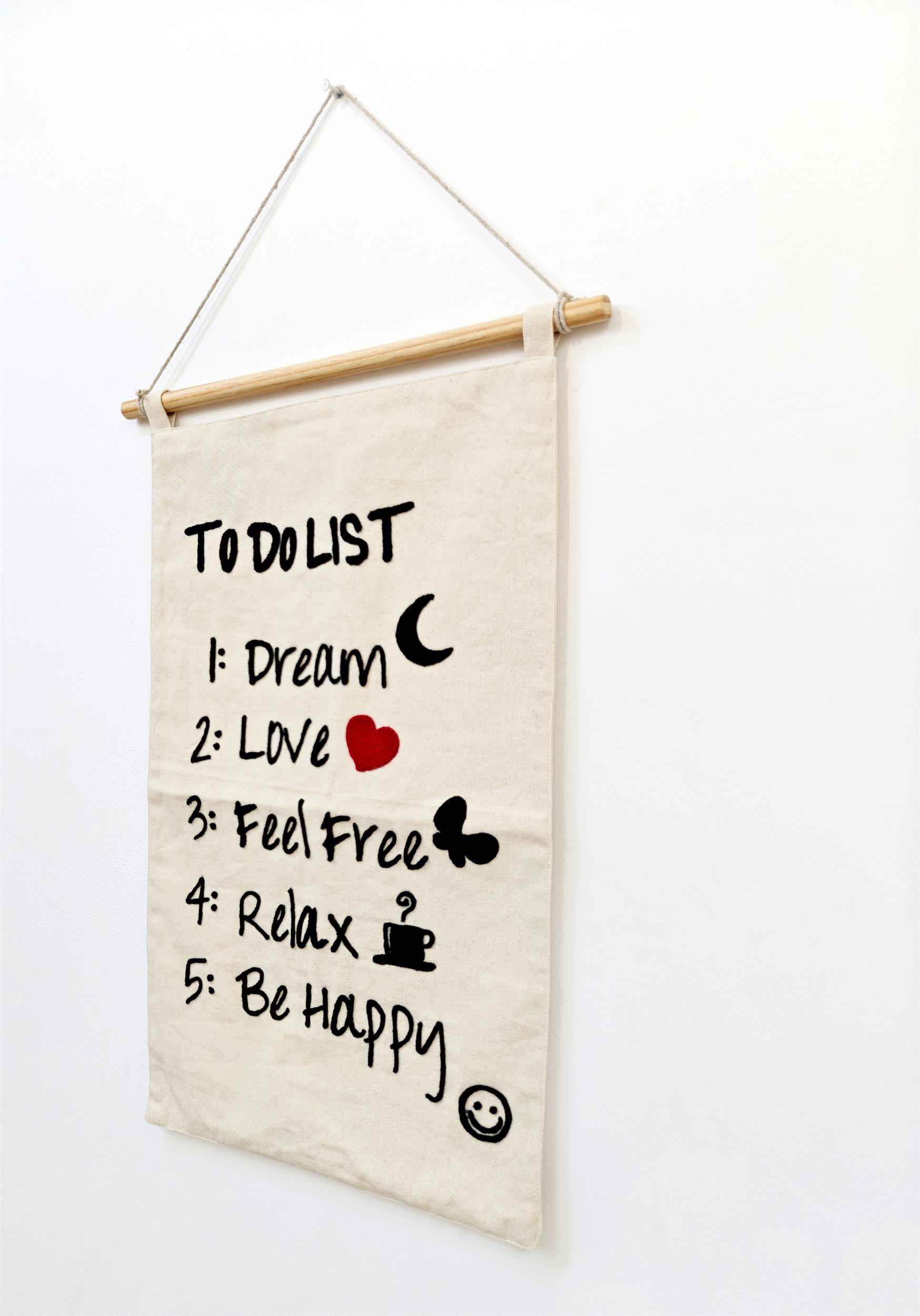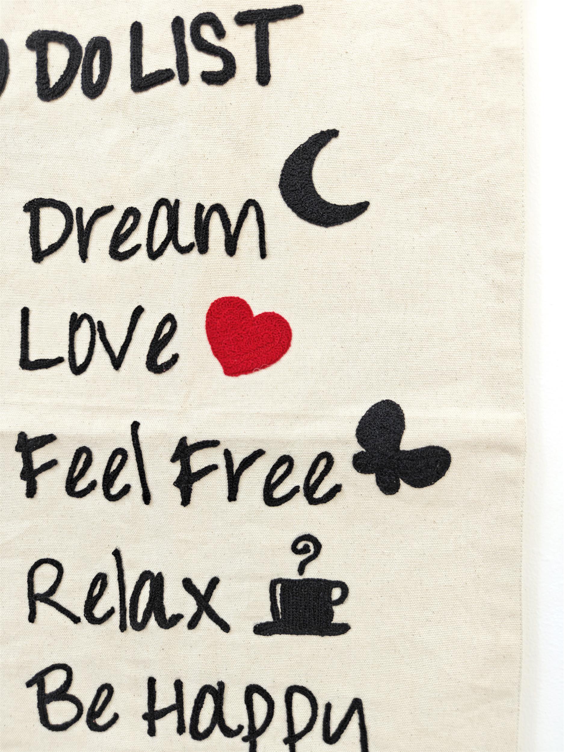 TO DO LIST : Dream, Love, Feel Free, Relax, Be Happy” Hand-Embroidered Wall Banner