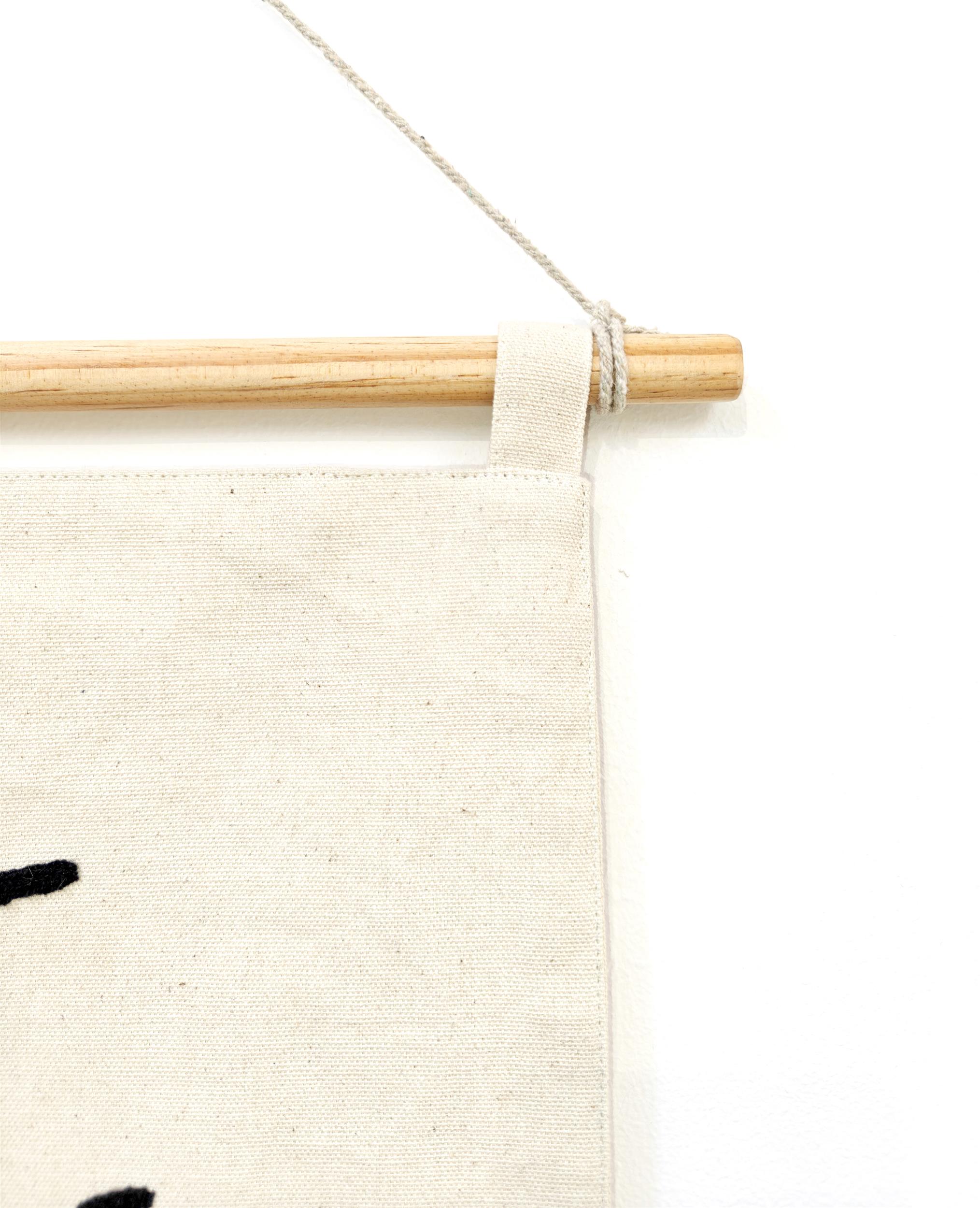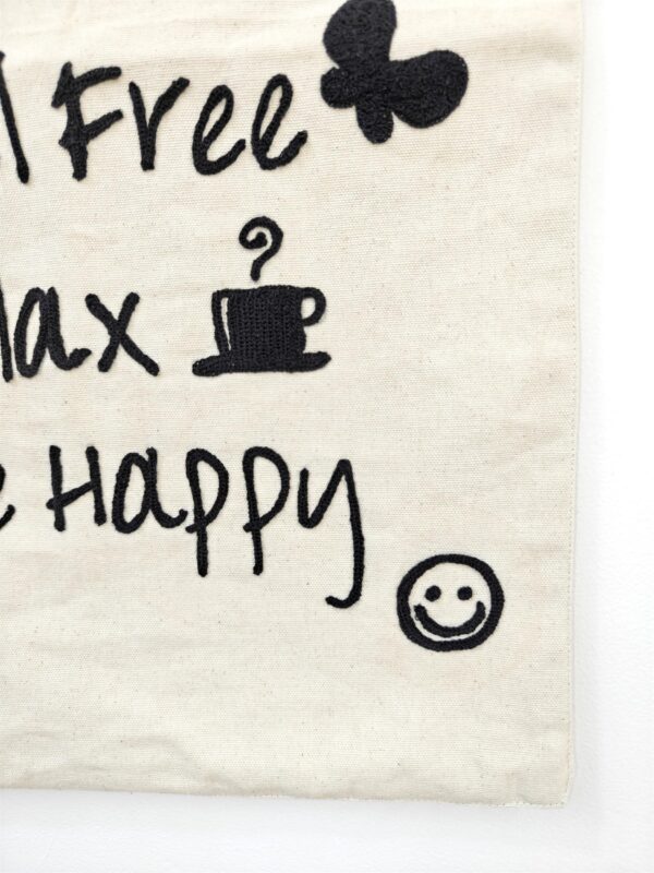 • Handmade Texture: Crafted on natural cotton fabric using the tufting or punch needle embroidery technique, the text and symbols have a soft, raised texture that adds a tactile, cozy feel.