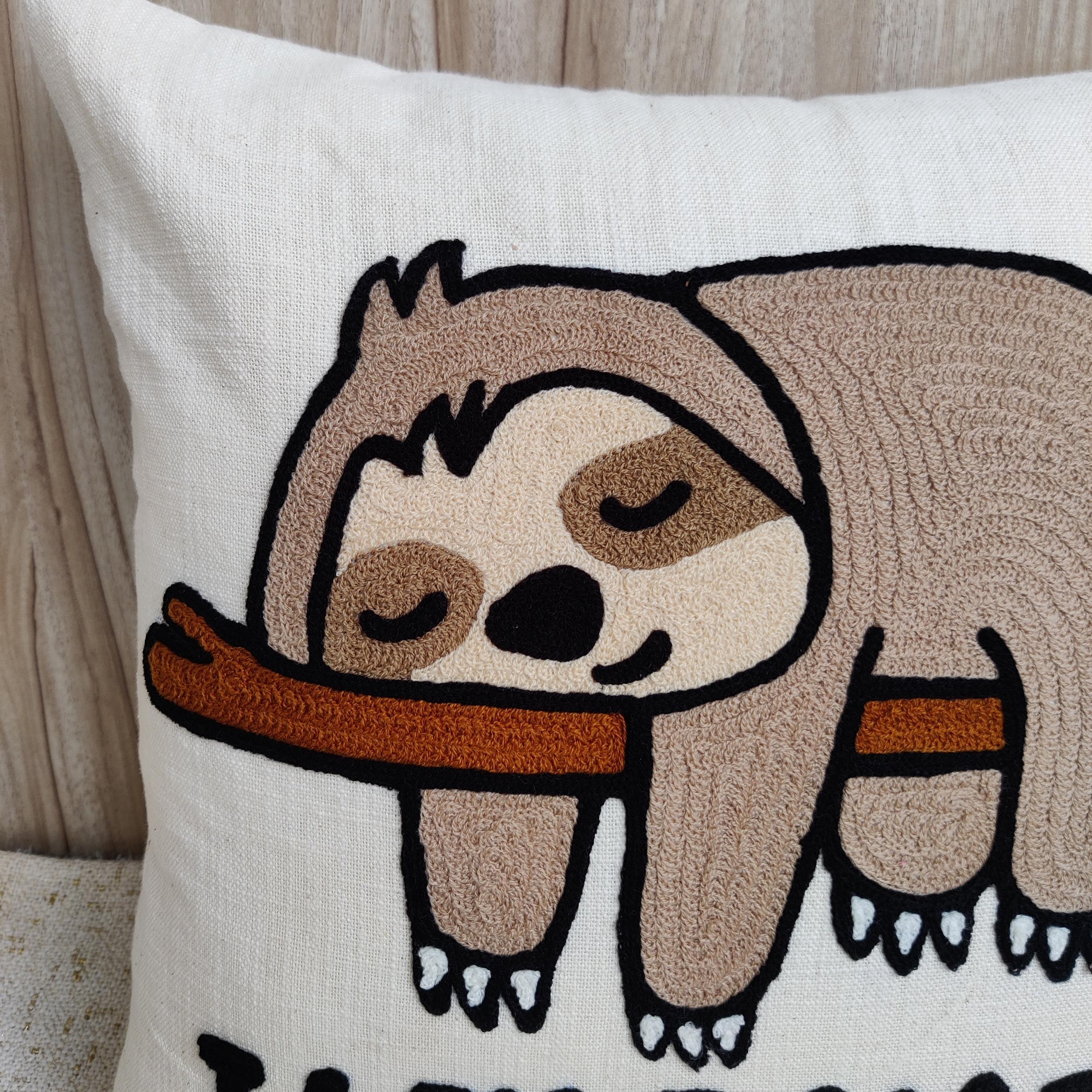 The ‘Nap King Sloth’ Hand-Embroidered Pillow Cover