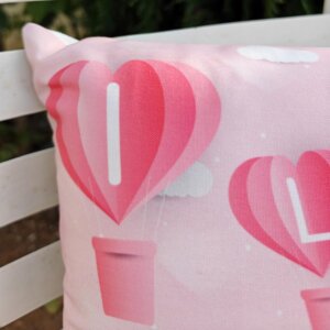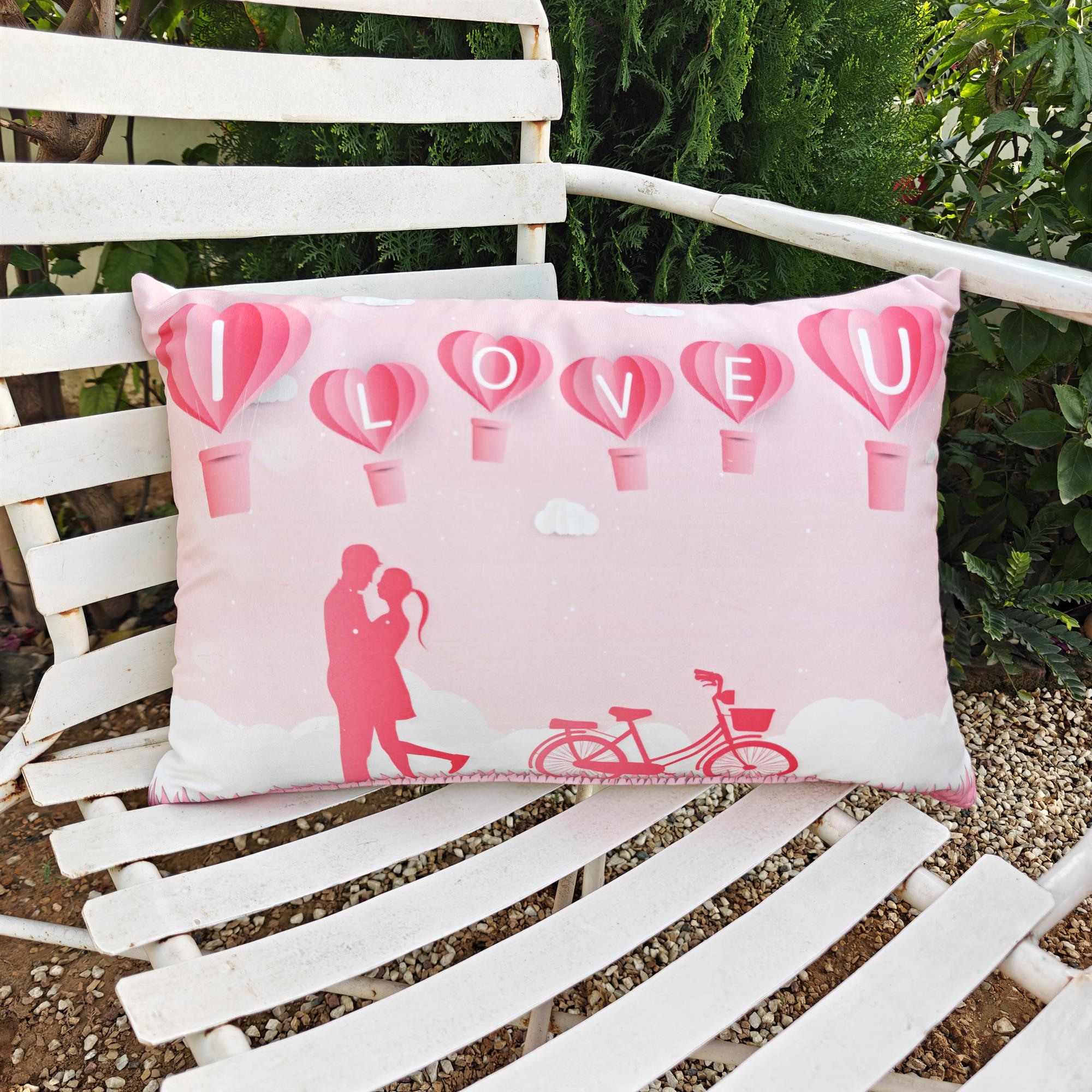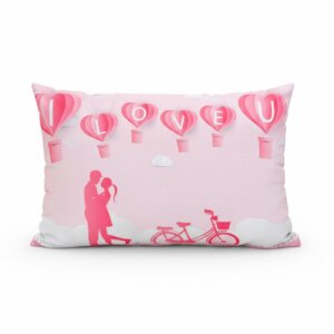 Express your affection with our charming “I LOVE U” Decorative Pillowcase. Set against a soft pink sky with fluffy clouds, this lumbar cover features a romantic pink silhouette of a couple in an embrace alongside a classic vintage bicycle. Floating above the scene are six heart-shaped hot air balloons that beautifully spell out “I LOVE U”. This playful and sentimental design is a perfect addition to a bedroom or nursery and makes a heartwarming gift for Valentine’s Day, anniversaries, or birthdays.