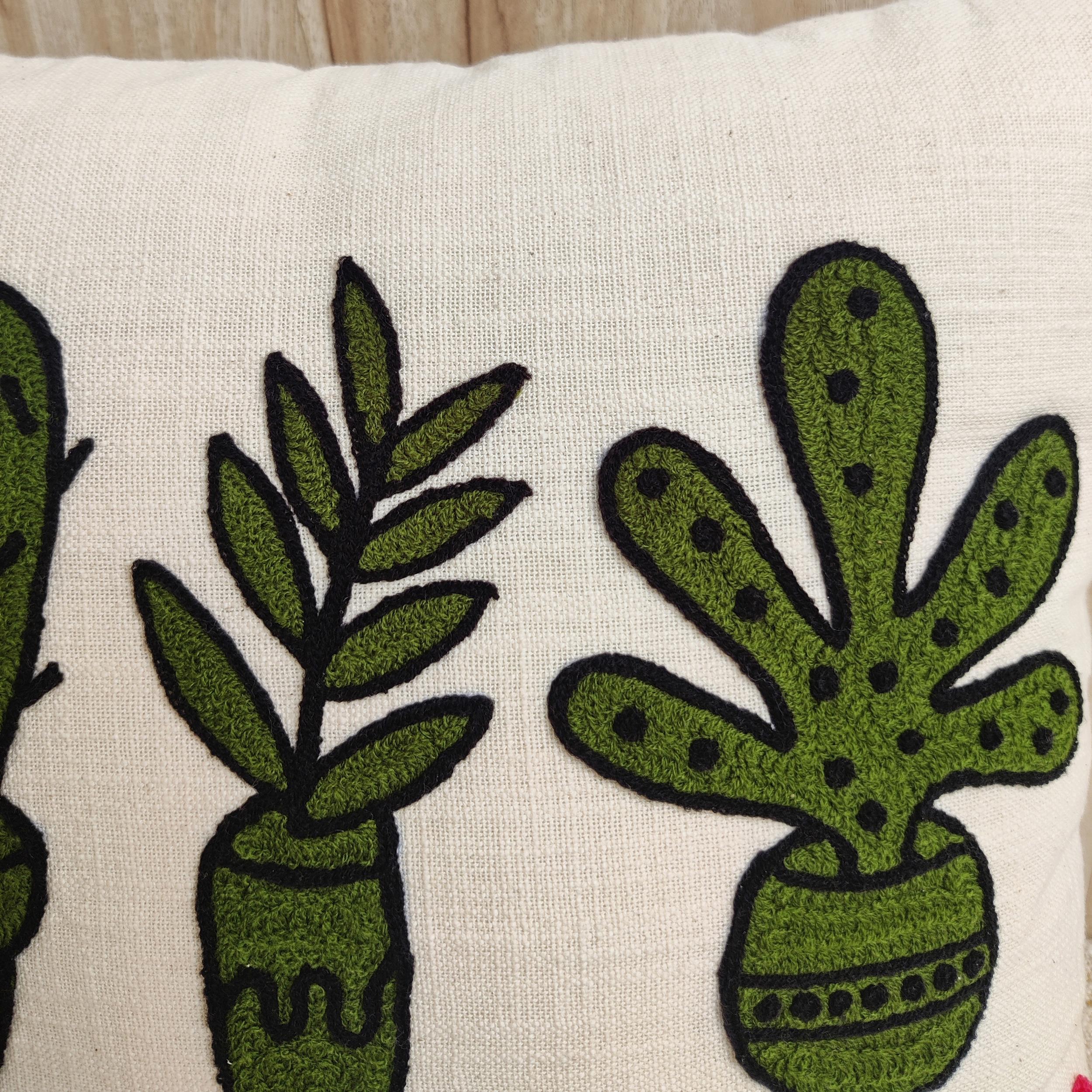 The ‘Succulent Sanctuary’ Hand-Stitched Cushion Cover