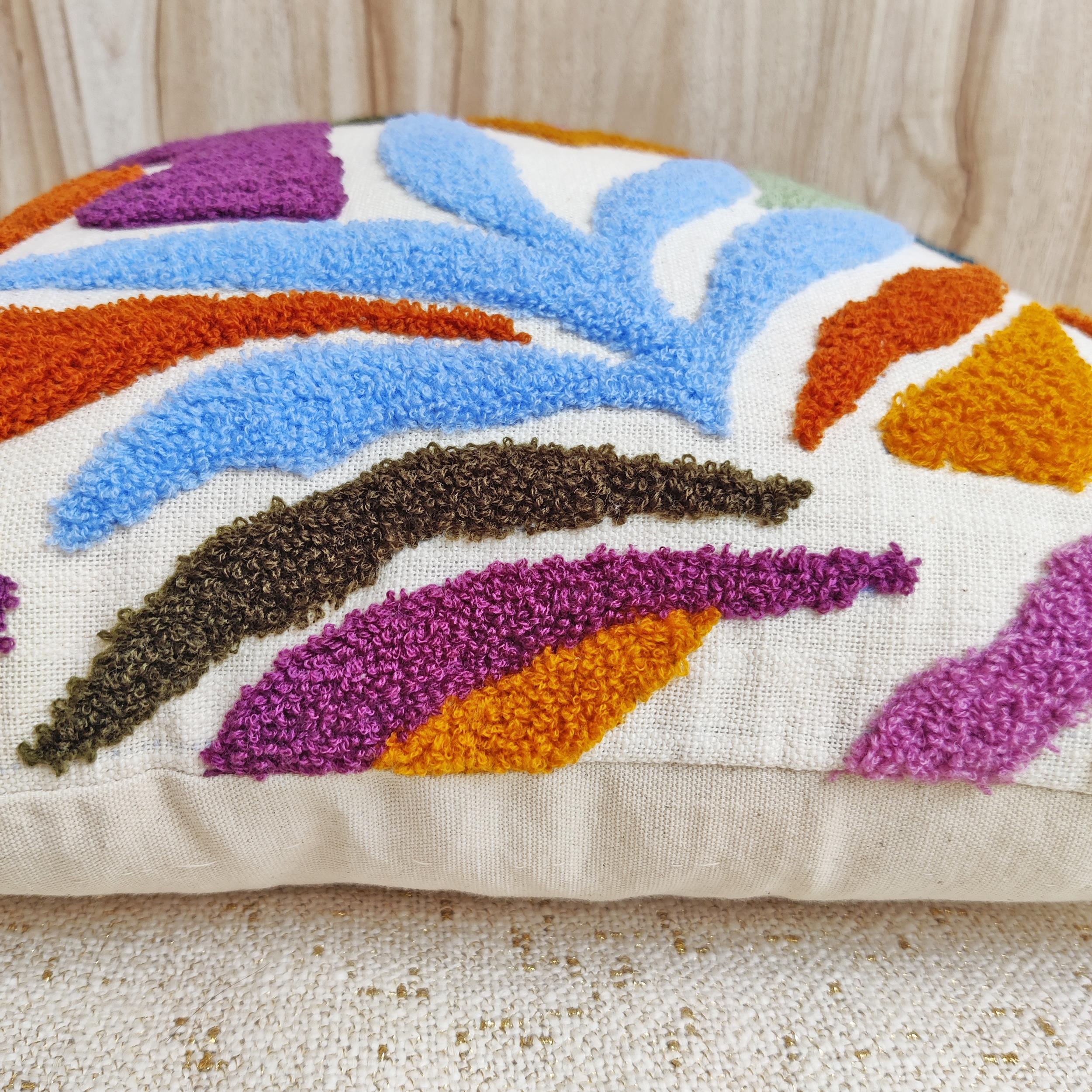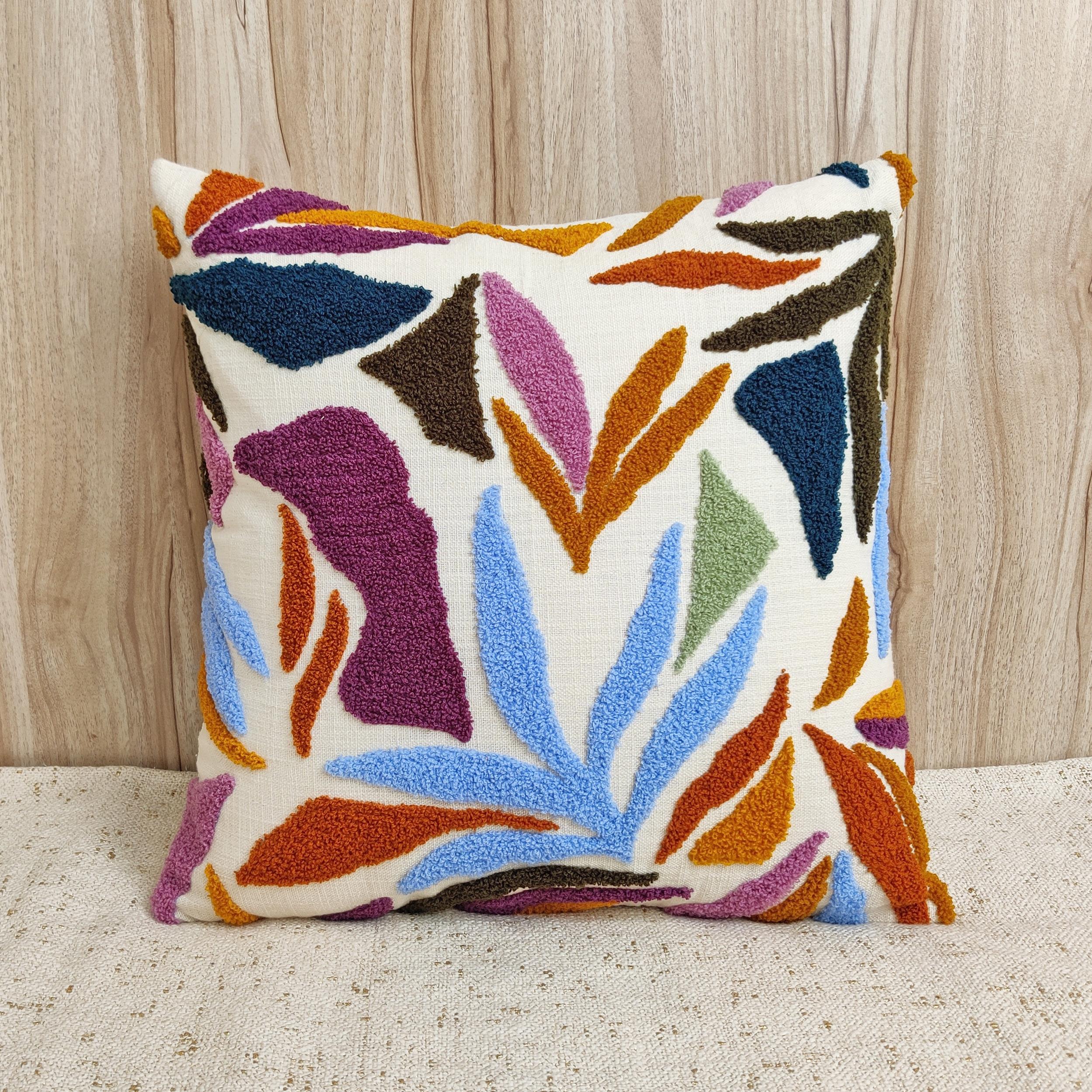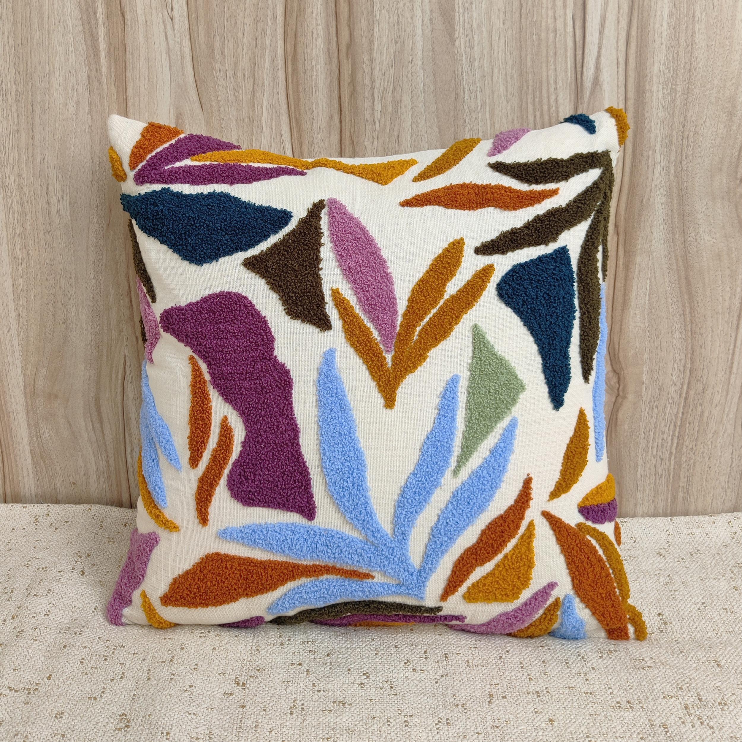 Bring a burst of color and unique artistry to your living room, bedroom, or cozy nook with this stunning pillow cover. Featuring a bold, abstract leaf design and rich, textural embroidery, it’s the perfect accent piece to elevate any decor style—from bohemian and eclectic to modern contemporary.