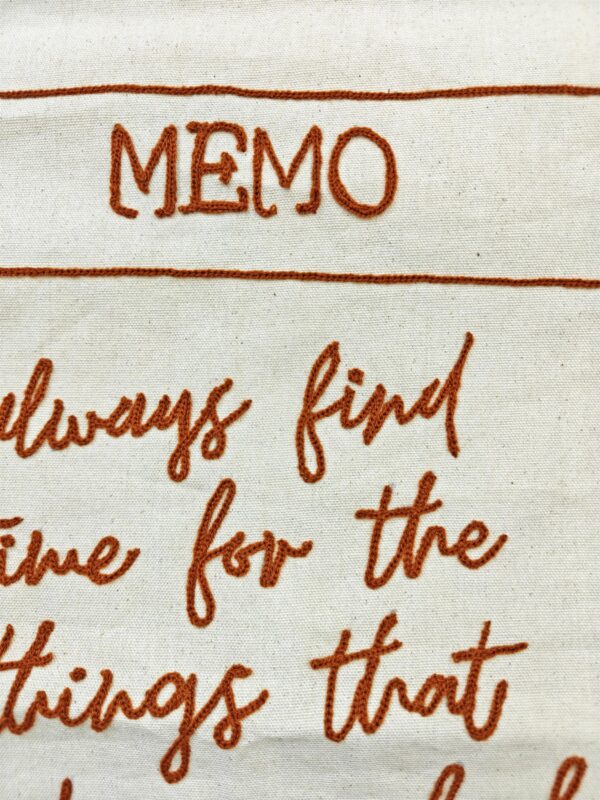 - Unique Tactile Art: The entire design, including the handwritten message and memo lines, is meticulously hand-embroidered . This process creates a substantial, raised texture that is soft to the touch and elevates the look beyond a simple flat print.