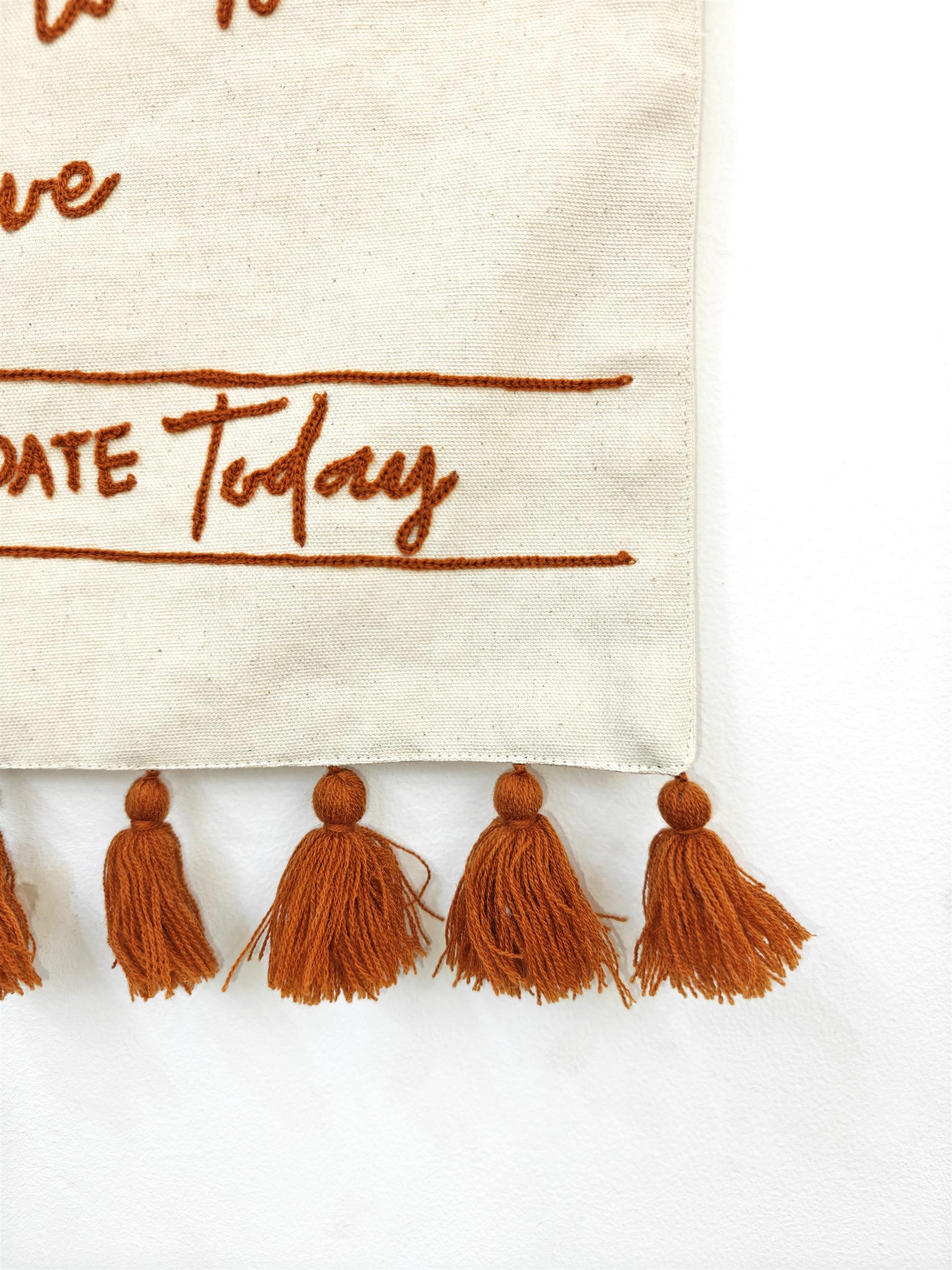Terracotta Memo Board Hand-Embroidered Wall Banner with Tassels
