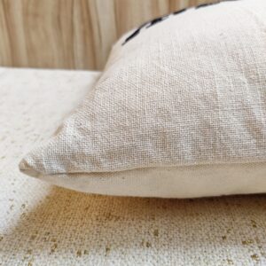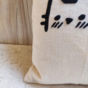 Inject a dose of cute charm and feline fun into your decor with this adorable hand-embroidered cotton cushion cover. This playful design spells out “MEOW” in a creative way, substituting the letters ‘M’ and ‘W’ with stylized cat faces complete with little whiskers and ears!