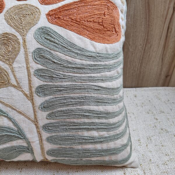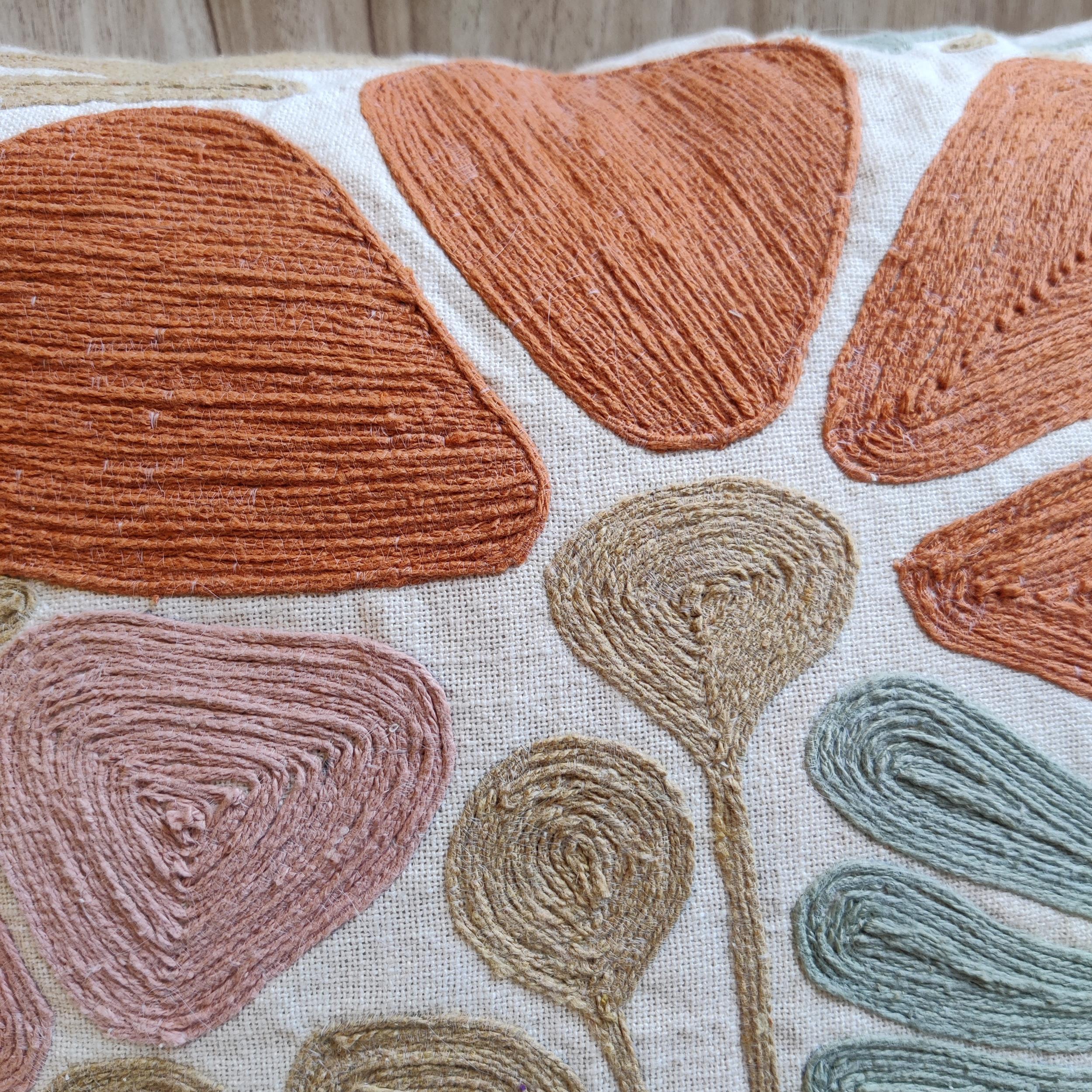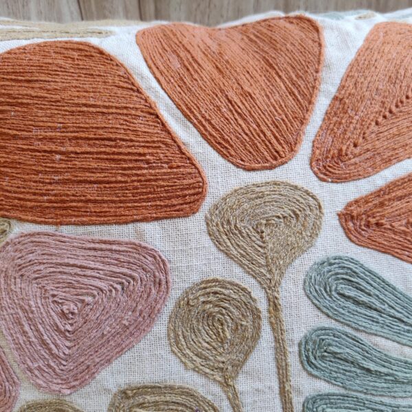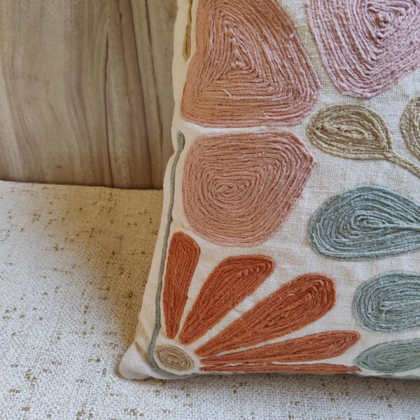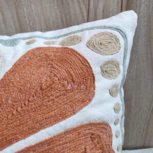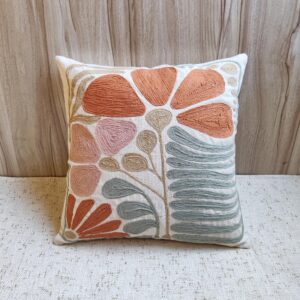 Add an artistic touch to your home décor with this Hand-Embroidered Floral Cushion Cover. Crafted on premium cotton fabric, it features detailed thread embroidery in warm terracotta, blush pink, and sage green hues. The abstract floral design blends modern style with handcrafted charm, making it perfect for your sofa, armchair, or bedroom setup.