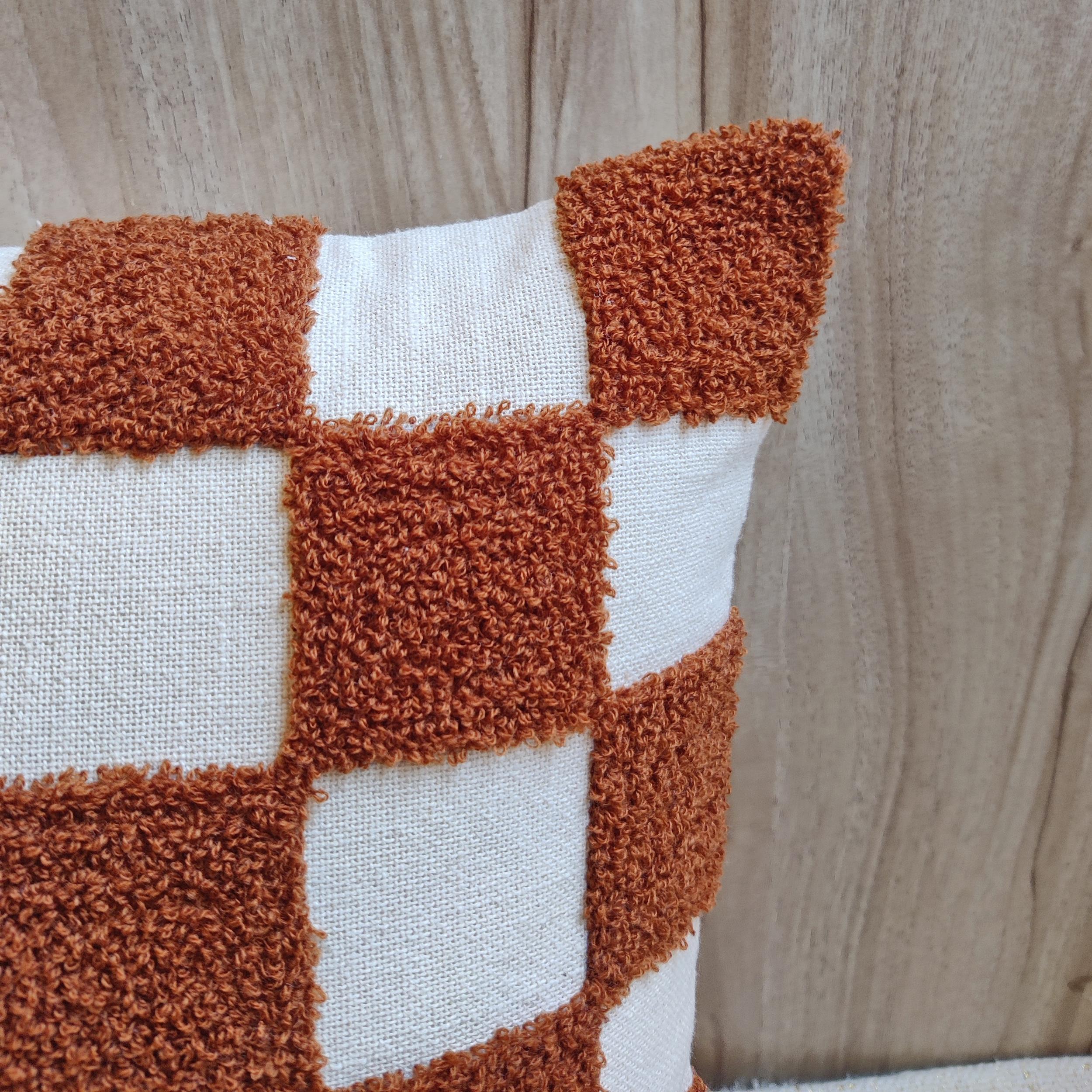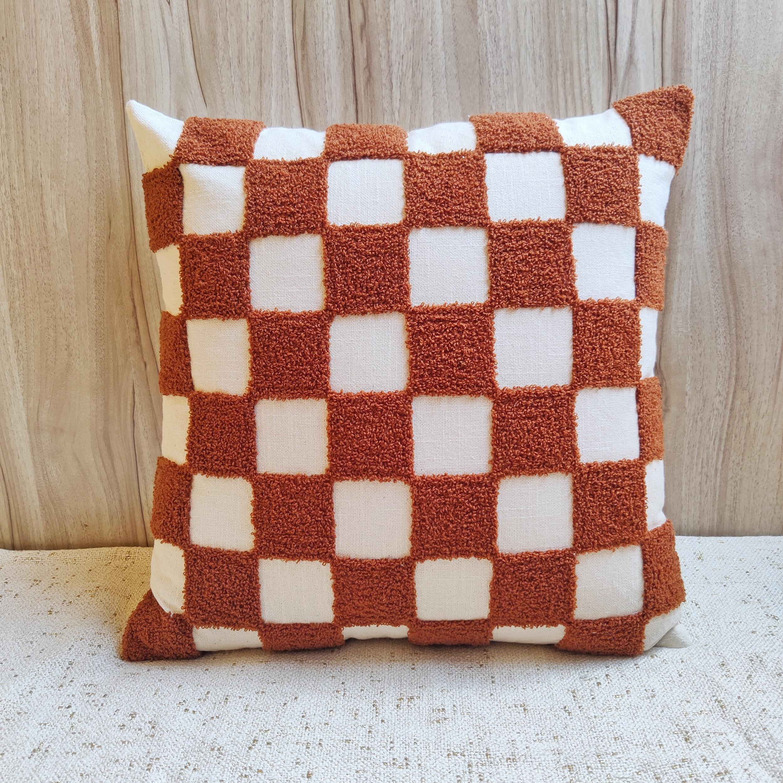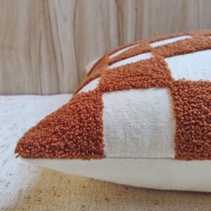 Make a bold, graphic statement with the ‘Terracotta Tuft’ Checkerboard Pillow Cover. This cushion combines a timeless pattern with an irresistible, luxurious texture, perfect for adding a cozy-yet-chic focal point to any room.