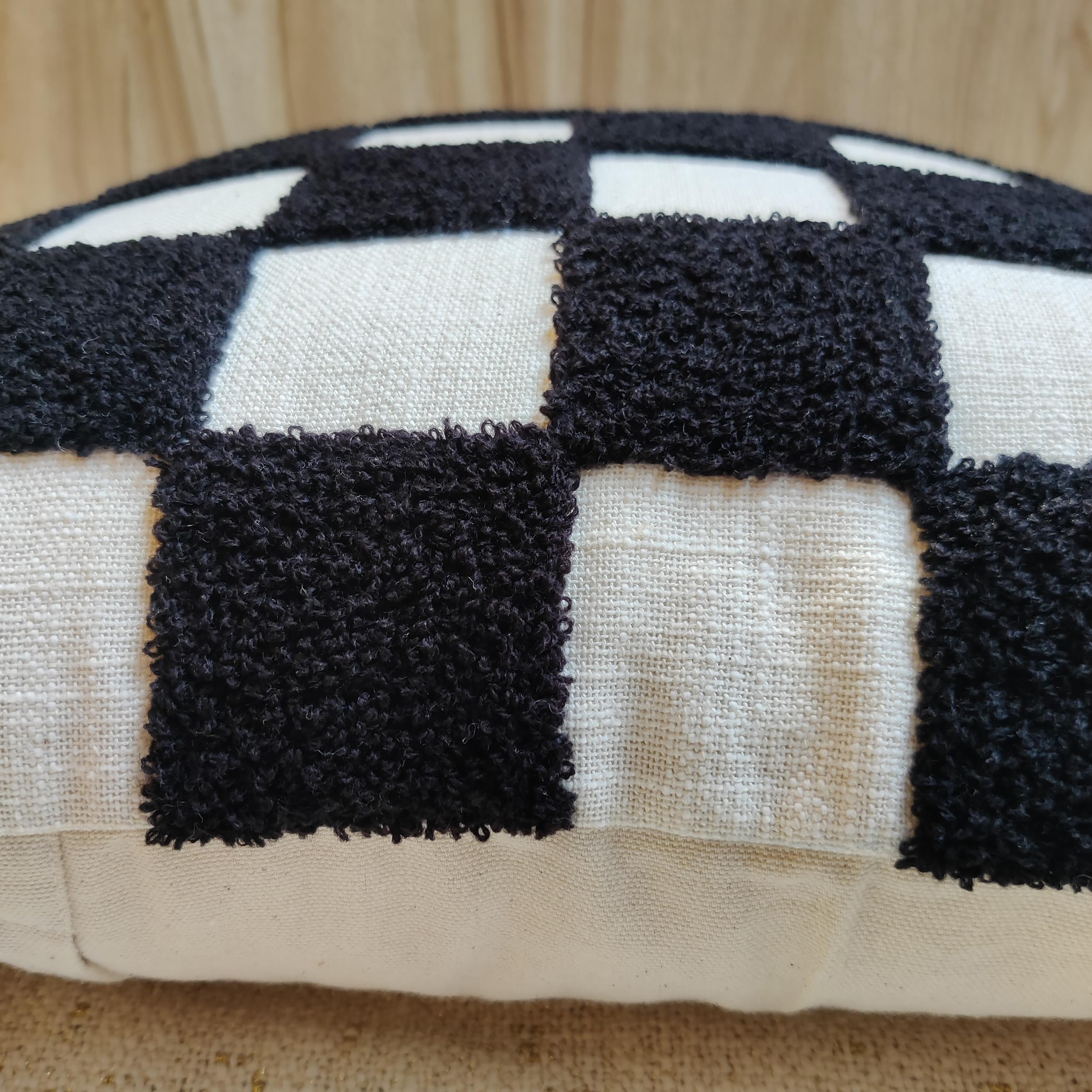 - Bold Graphic Design: Features a striking, large-scale checkerboard pattern in a rich Black and Natural white.