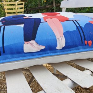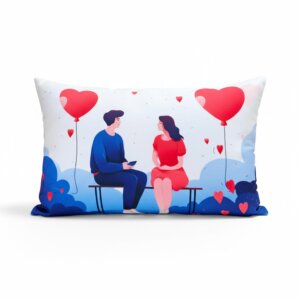 Add a touch of modern whimsy and romance to your home decor with our “Romantic Moment” Lumbar Pillowcase. This charming rectangular cushion cover features a stylized illustration of a couple sharing a tender moment on a bench, with a man holding a small gift box for his partner. Surrounded by floating red hearts and large heart-shaped balloons against a playful blue and white landscape, this piece tells a sweet story of love and connection. Its unique lumbar shape makes it perfect for adding both style and comfort to a sofa, bed, or favorite armchair, and it makes a thoughtful gift for anniversaries or special occasions.