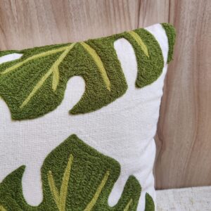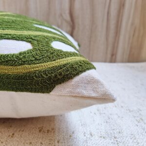 RYDER Green Monstera Hand Embroidered Pillow Cover
