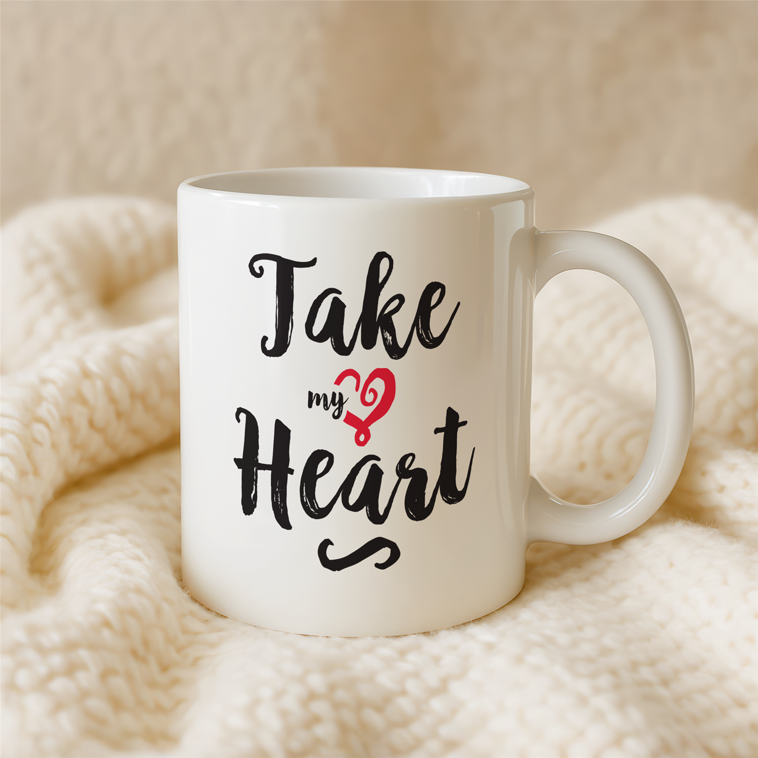 Express love in the simplest and sweetest way with this beautiful “Take My Heart” Ceramic Mug. Designed with stylish typography and a small heart detail, this mug is a perfect symbol of affection and warmth. Whether it’s for your partner, spouse, or someone special, this mug makes every sip feel more meaningful.