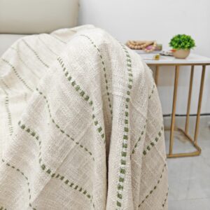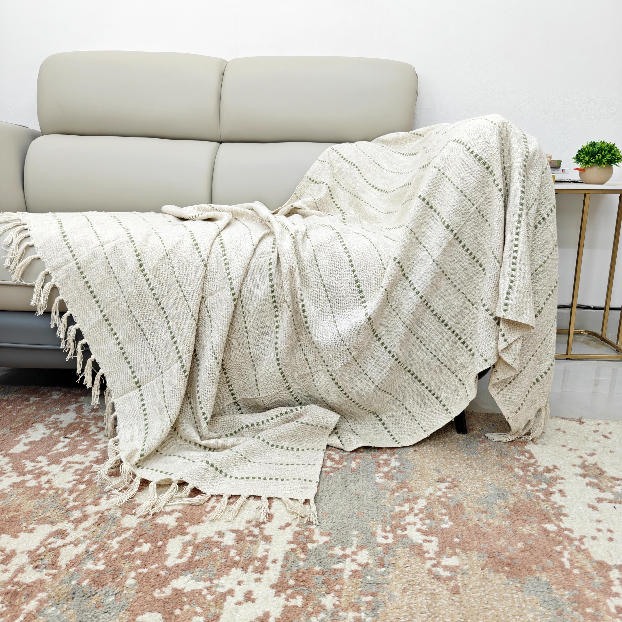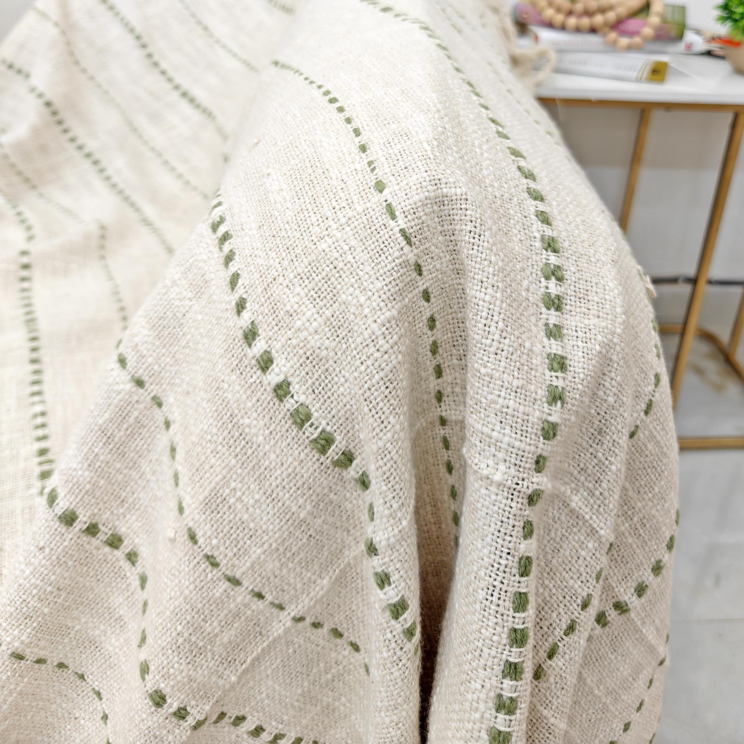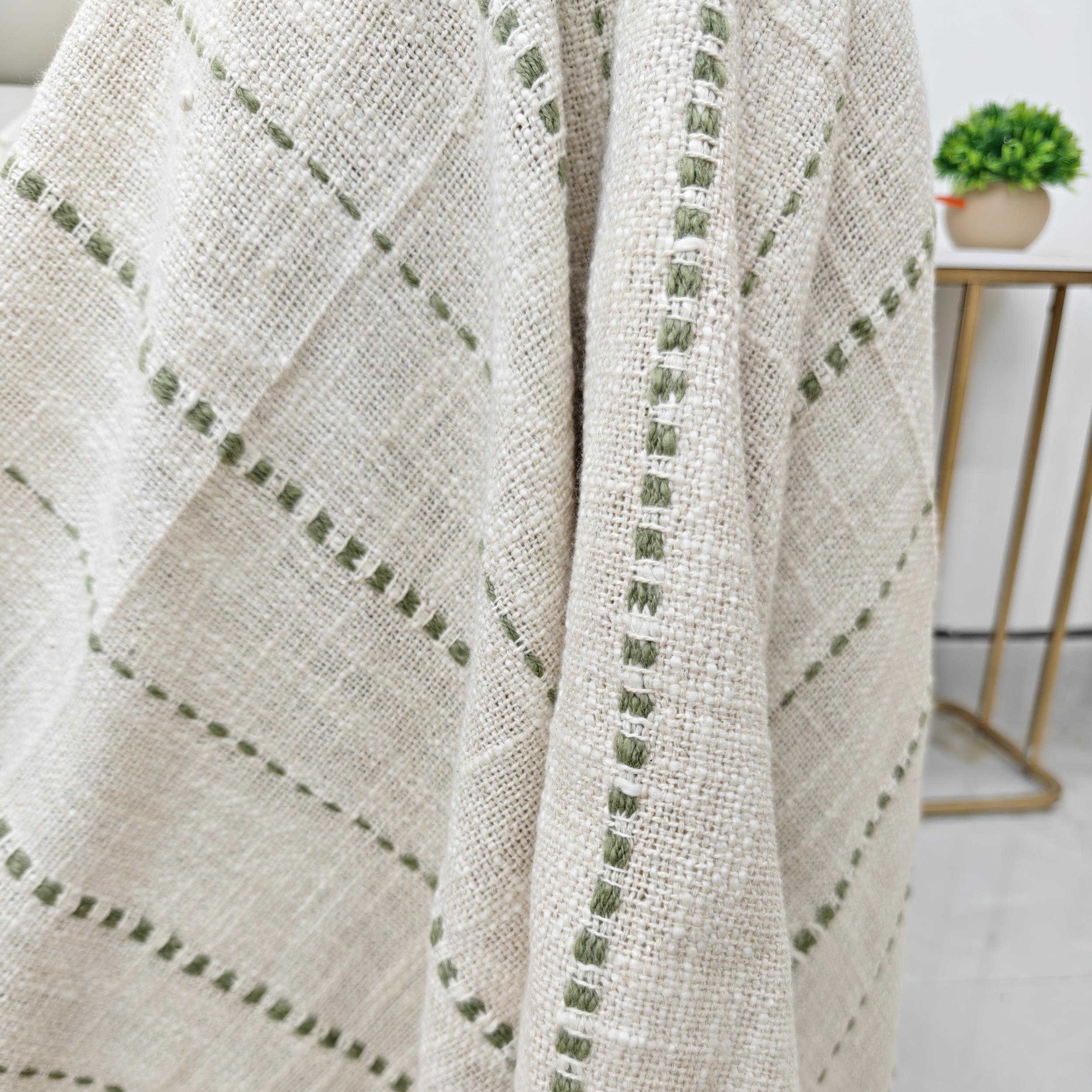 The Alora Boho Chic Sage Green Tufted Stripes Throw Blanket