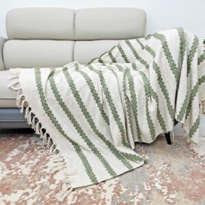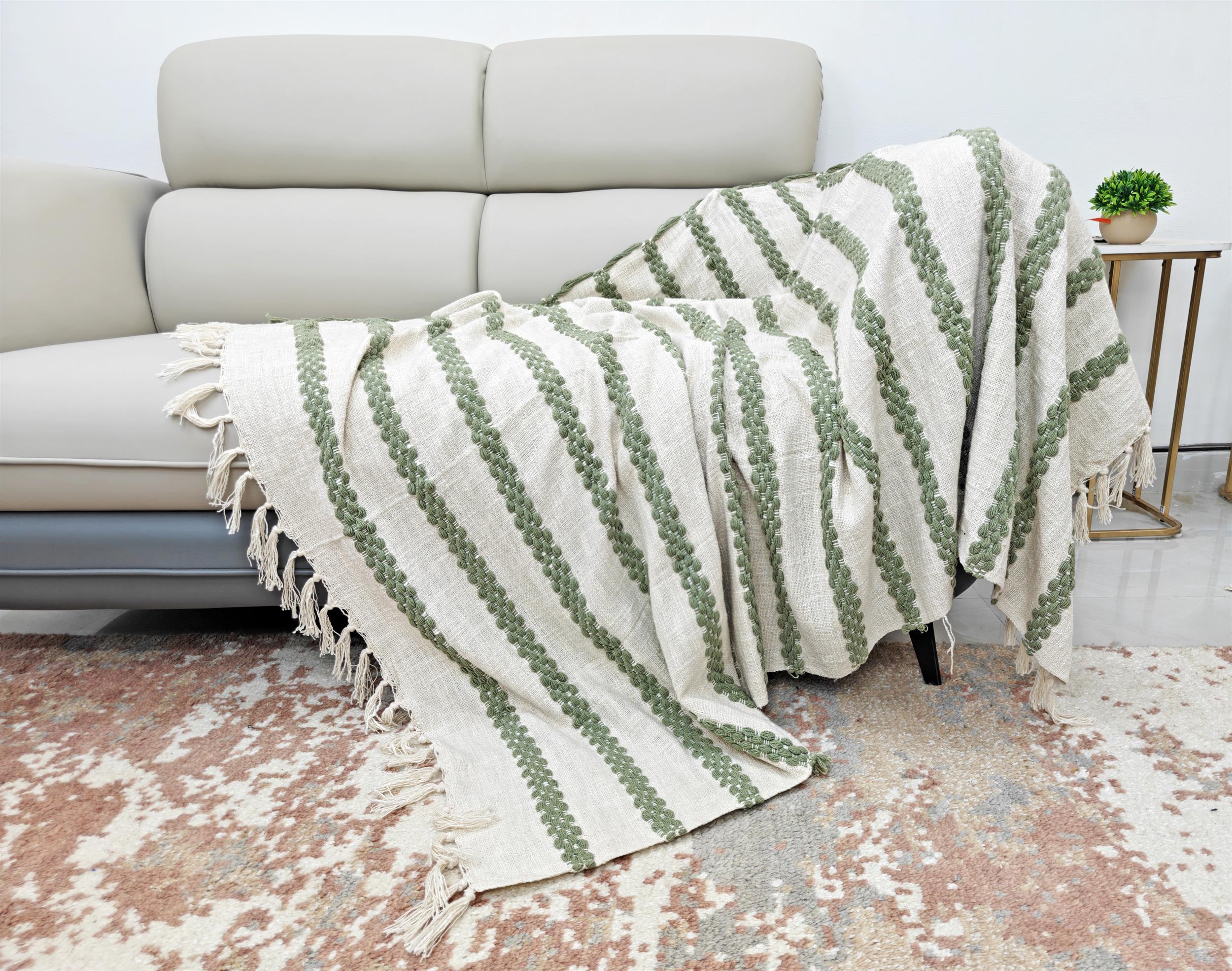 The 52 × 72 inch cotton throw blanket is ideal for sofas, beds, armchairs, or layering during all seasons. Its simple design and natural texture blend easily with modern, boho, and traditional home décor styles.