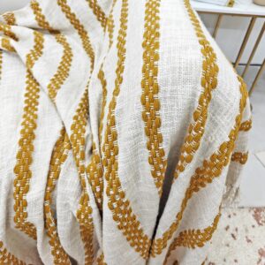 • Color: Neutral Ivory/White base with Vibrant Mustard Gold/Ochre accents.