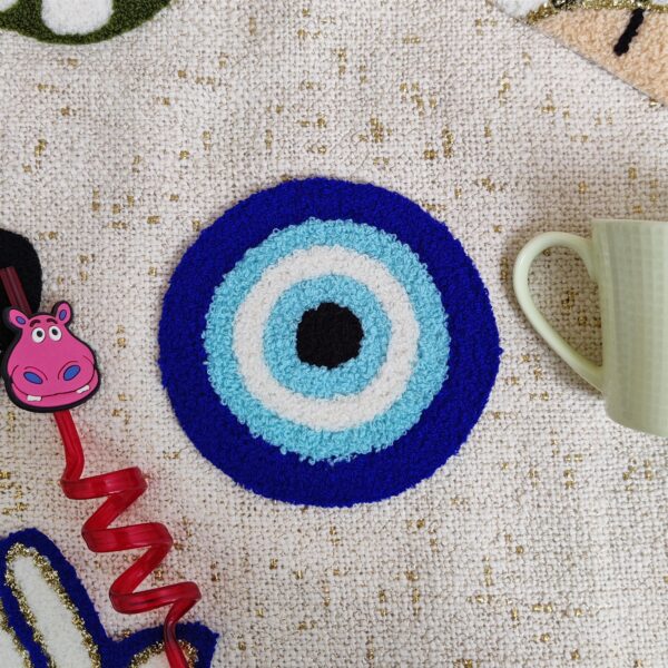 This traditional Evil Eye mug rug is a meaningful gift or a stylish way to incorporate a protective element into your daily life. It protects your furniture while serving as an eye-catching, symbolic piece of décor.